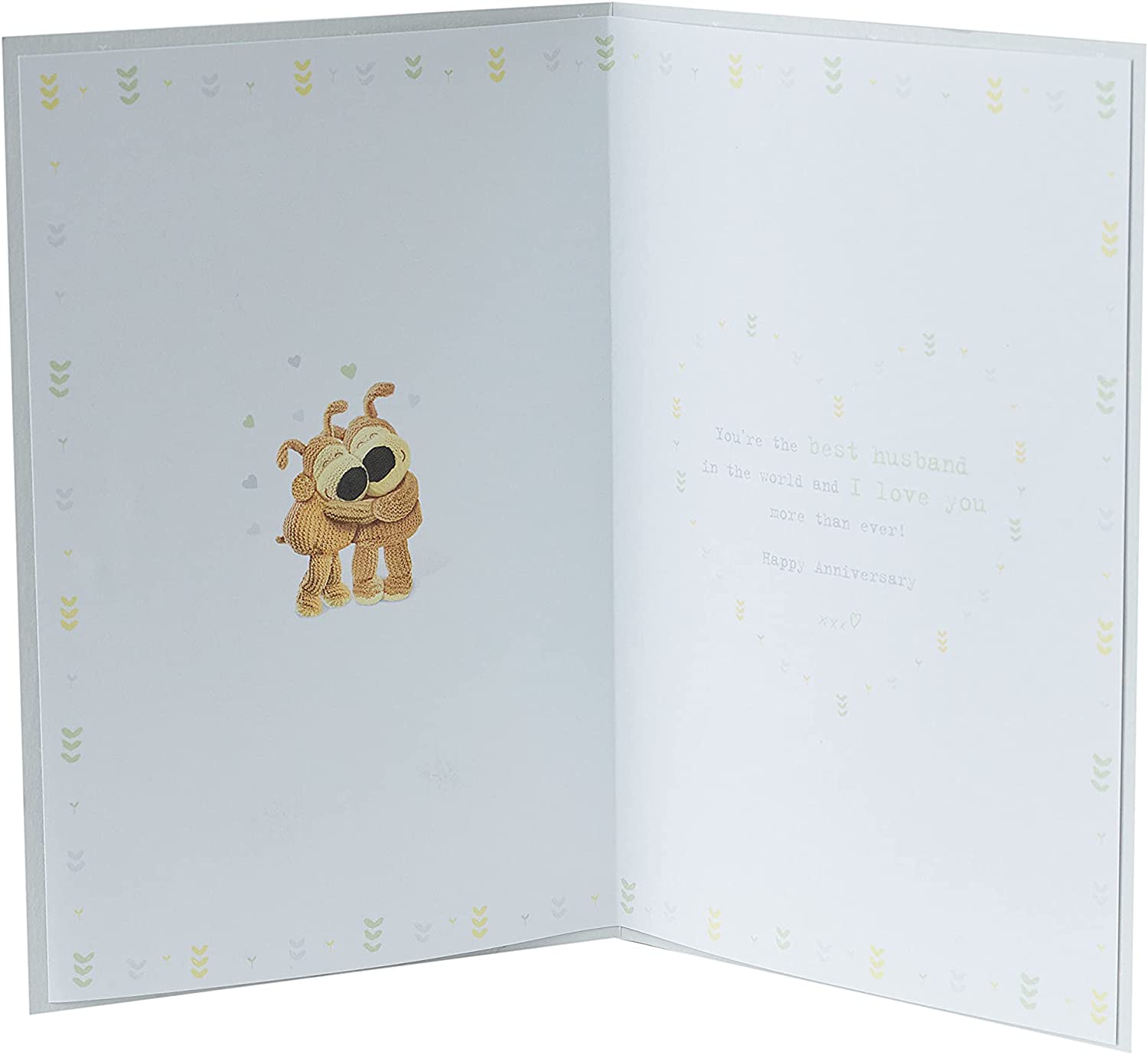 Send lots of love to the best husband in the world with this cute Boofle anniversary card, finished with metallic foil and embossed detail. Inside Verse: "You're the best husband in the world and I love you more than ever! Happy Anniversary." Approx Size: 149 x 229mm.