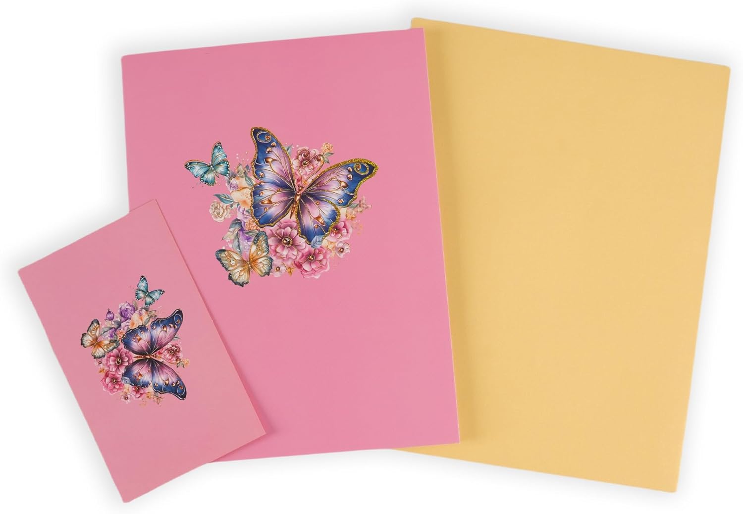 Celebrate beauty and transformation with this stunning pop-up card featuring a vibrant bouquet of butterflies rising from a floral base. The intricate 3D design showcases butterflies in shades of pink, orange, and purple, fluttering above a garden of printed blossoms on a soft pink background. Hot stamping adds a shimmering touch to the wings and floral accents, creating a luxurious finish that catches the light. The card includes a main piece measuring 15 cm x 20 cm and a small insert card (10 cm x 6 cm) for personal messages. Perfect for birthdays, thank-you notes, Mother’s Day, or moments of encouragement, this keepsake card blends elegance with joyful energy. A display-worthy gift for butterfly lovers and anyone who appreciates delicate craftsmanship. Whether celebrating a milestone or simply brightening someone’s day, this card makes every occasion feel special.