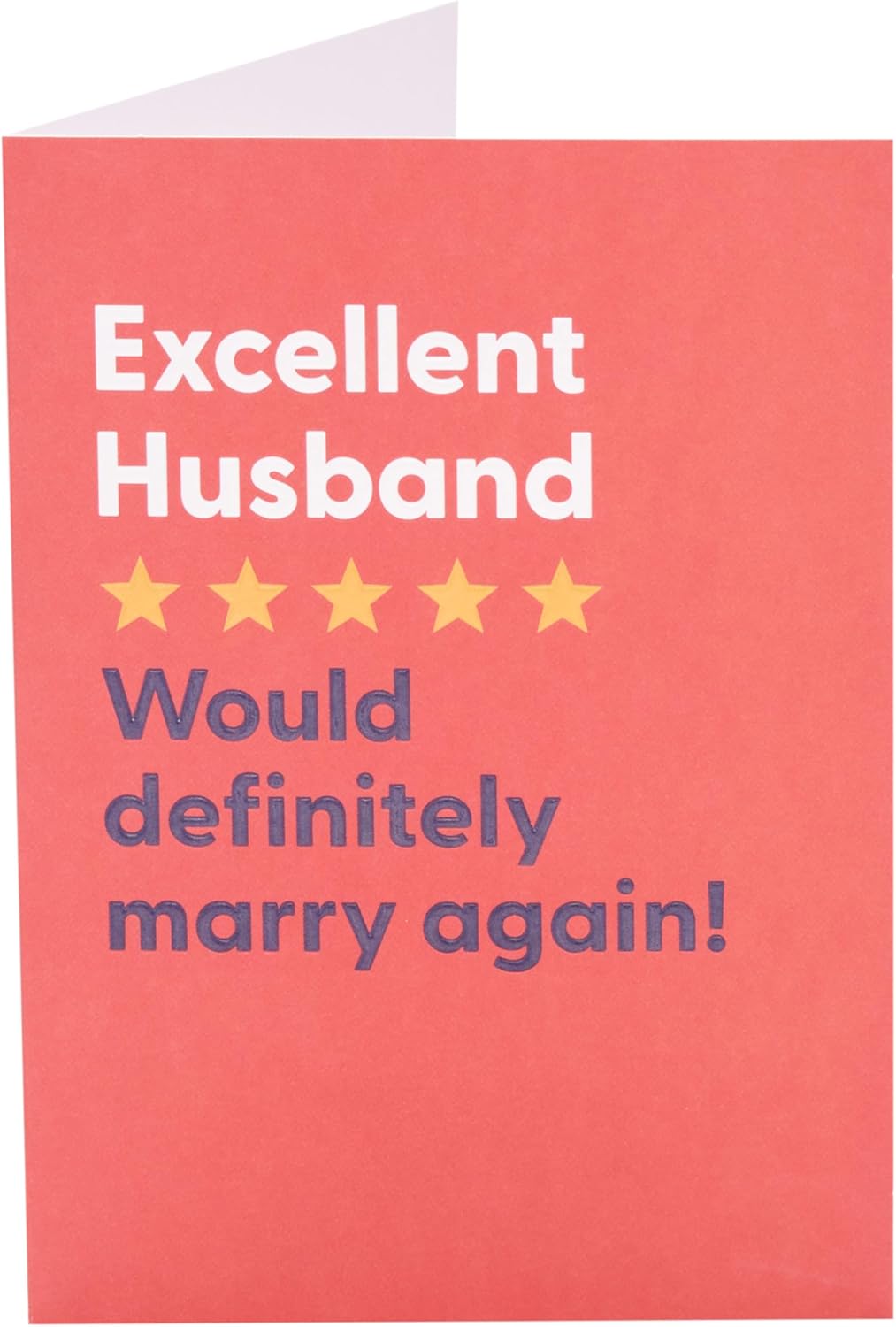 ANNIVERSARY CARD - Celebrate love and milestones with a thoughtful, heartfelt, or funny Anniversary card. Perfect for a 1st, 40th, 50th (Diamond) or 60th (Golden) wedding Anniversary, as well as relationship milestones. DESIGN - A fun and witty typography-based anniversary card for your husband, which parodies an online review format to let him know just how perfect you think he is! GIFTS FOR MEN - Make his day with a thoughtful card. From birthday cards to thank you cards, our collection offers the perfect words to show him how much he’s appreciated. SIZE - This card measures 12.7x17.8cm, ample space for a personal message, and a perfect size for displaying as a keepsake in your home.
