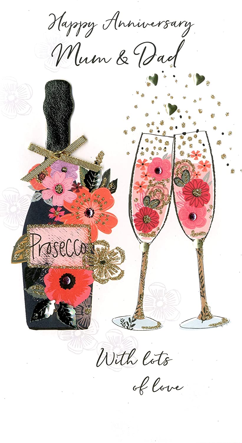 Mum & Dad Anniversary Greeting Card Hand-Finished Champagne Range Cards