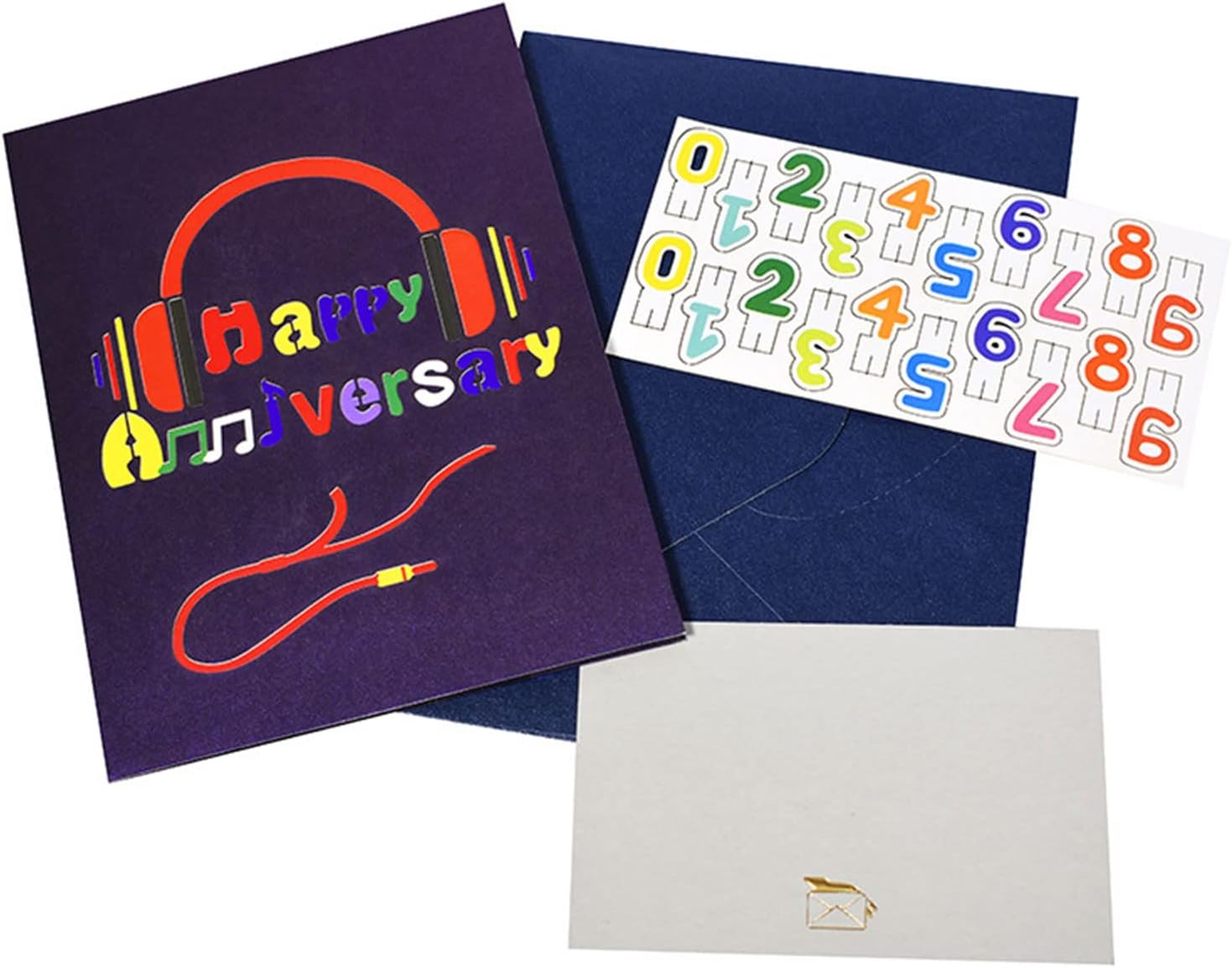 Celebrate love in harmony with this music-themed 3D pop-up anniversary card, featuring a three-dimensional stage scene complete with instruments like a piano, drums, and violin. The front cover showcases a sleek pair of headphones, setting the tone for a truly melodic surprise. When opened, the card reveals a vivid print, laser-cut “Happy Anniversary” message, creating an enchanting experience that brings joy to any celebration. Perfect for husbands, wives, or couples, this card expresses romance and appreciation in a unique, heartfelt way. Measuring 15 x 20 cm, it includes a small blank insert (8.5 x 13 cm), giving you space to add a personalized message for an unforgettable anniversary greeting.