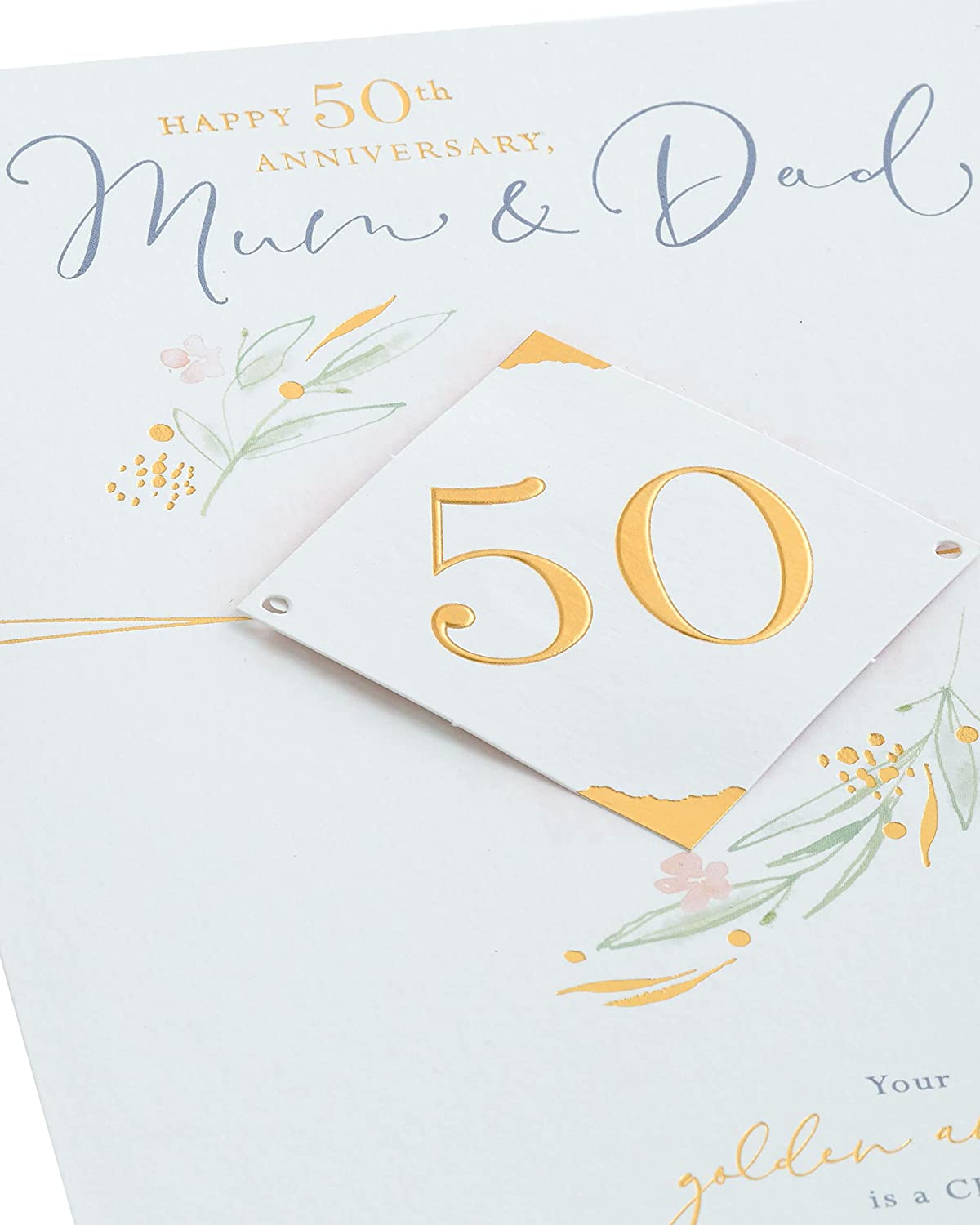 On Your 50th Golden Anniversary Large Exquisite Card for Mum and Dad