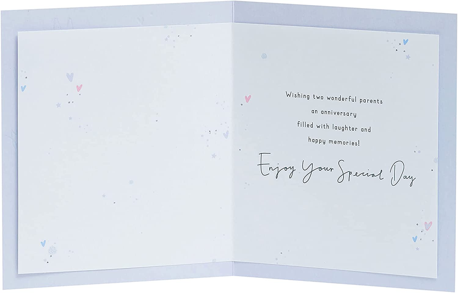 Wish your mum and dad a lovely anniversary with this stylish card, embossed with gold foil detailing. Message Inside Reads: Wishing two wonderful parents an anniversary filled with laughter and happy memories! Enjoy Your Special Day. Card Size: 159mm x 184mm. Envelope Included.