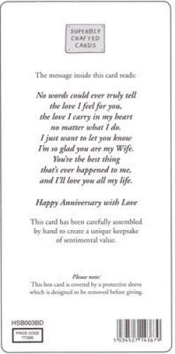 You are viewing: a new luxury greeting card occasion: to my wife on our anniversary message: as pictured details: this lovely unique hand-made keepsake card is from superbly crafted cards, it comes complete with a acetate box. large square. 20cm x 20cm8" x 8"