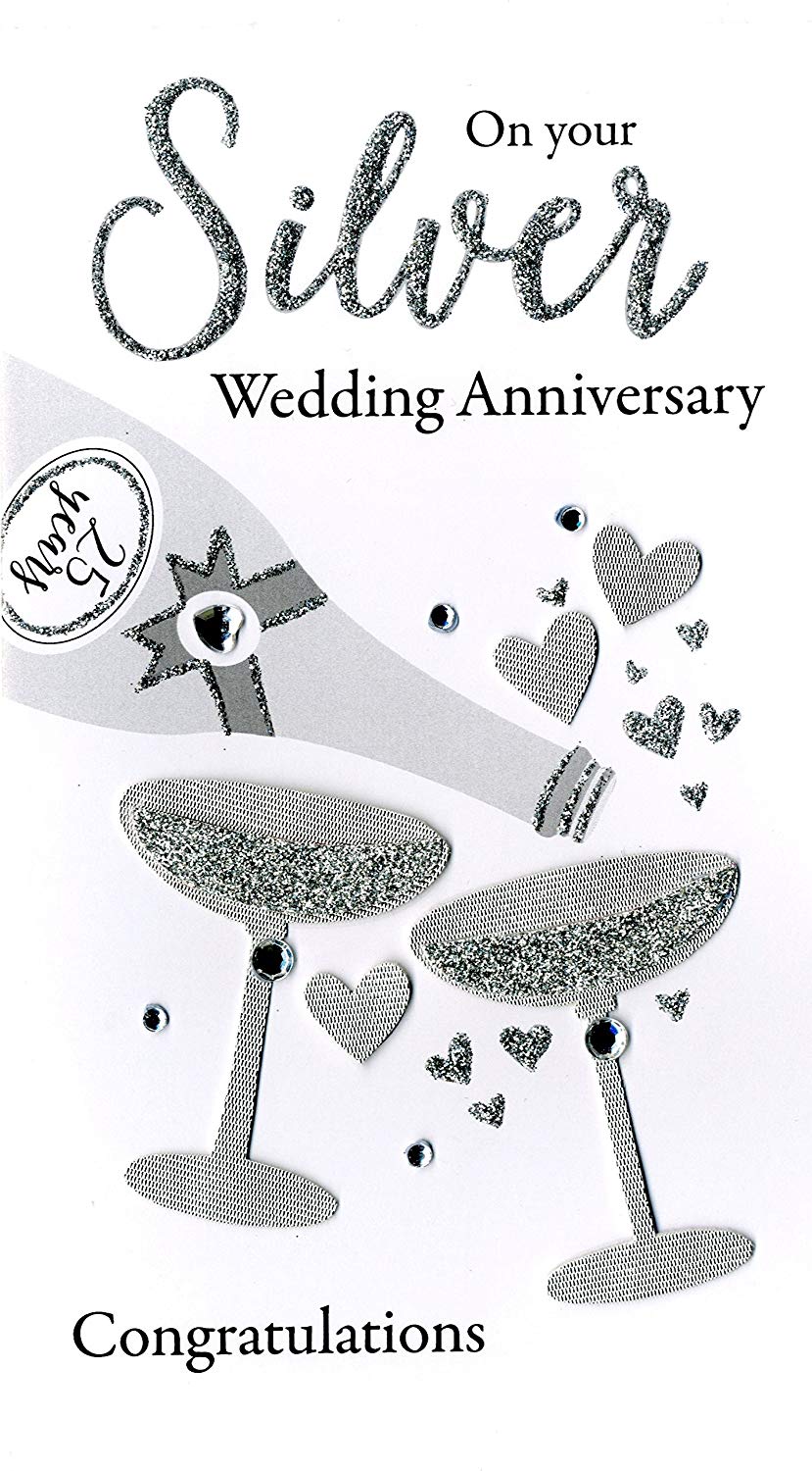 Silver 25th Anniversary Greeting Card Hand-Finished Champagne Range Cards