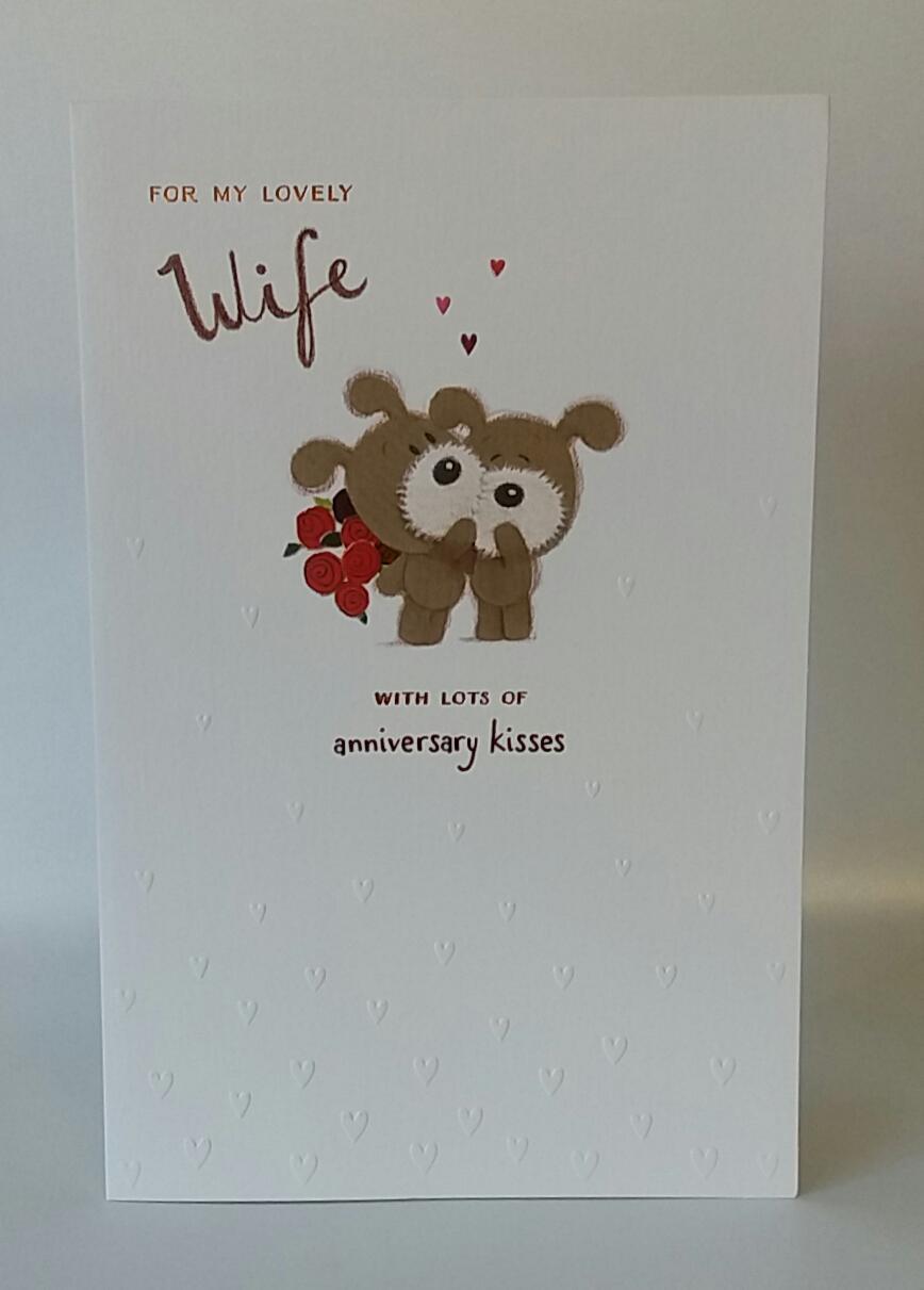 Wife Anniversary Kisses Lots Of Woof Couple Greetings Card