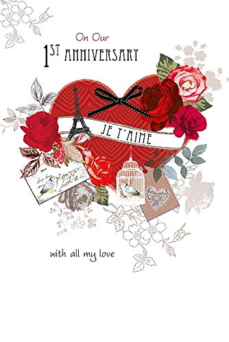 Wishing Well Studios Greetings Card. On Our 1st Anniversary - with all my love. (page insert) Inside: I am lucky to have someone so wonderful to love and to be loved in return... I am lucky to have a best friend to laugh with and a partner to share dreams with... I am lucky to have someone who makes my life complete. Happy Anniversary. Approx Size: 153mm x 216mm