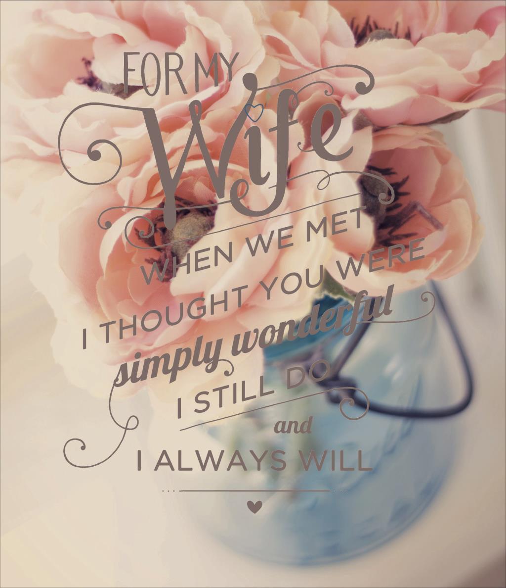Wording on Front: For My Wife. When We Met I Thought You Were Simply Wonderful I Still Do and I Always Will Inside Verse: Happy Anniversary. With Love Today and Always Finish: Embossed Matt with Diamanté, Colour Inside Dimensions: 184mm x 158mm