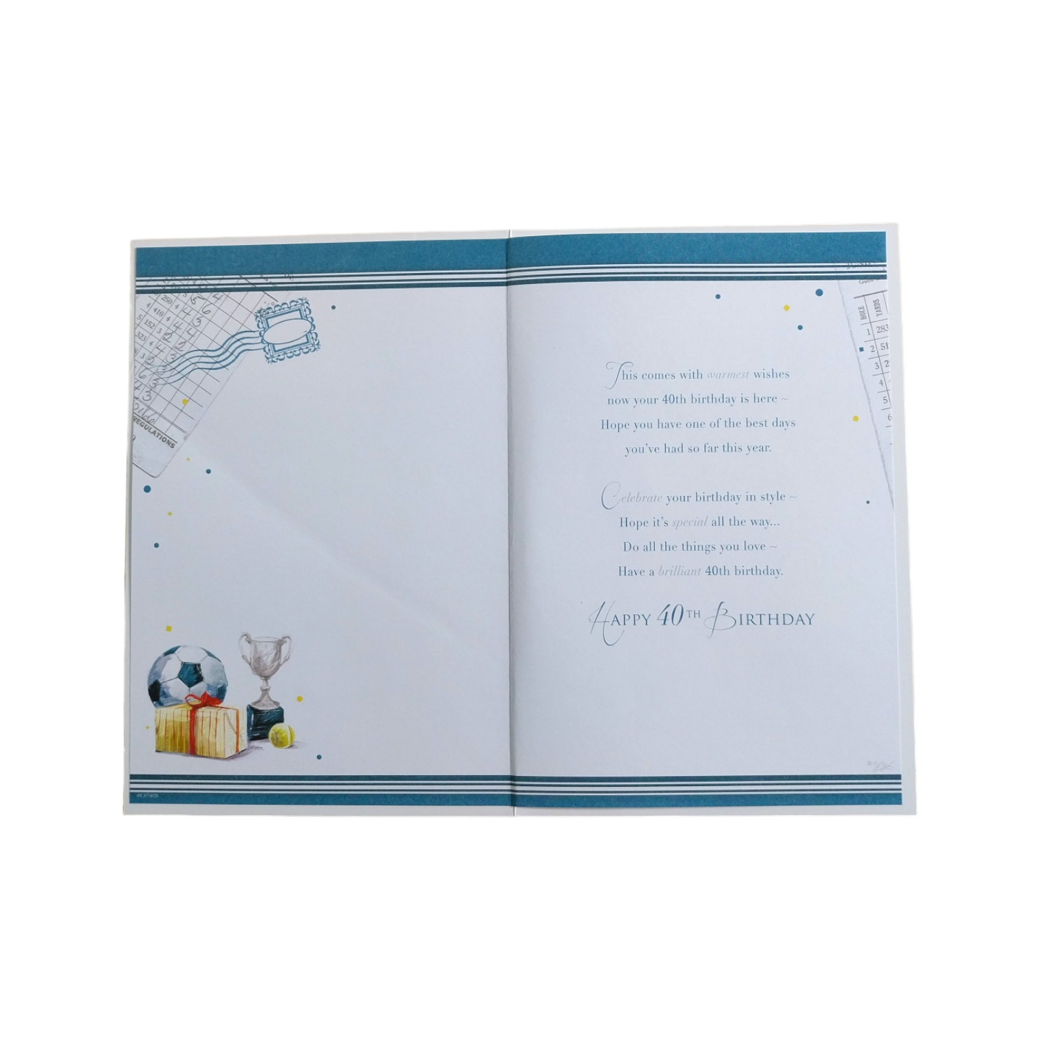 High quality Xpress Yourself Celebrity Style open male 40th birthday card. Approx size of card is 6" x 9" inches Stylish design and verse.