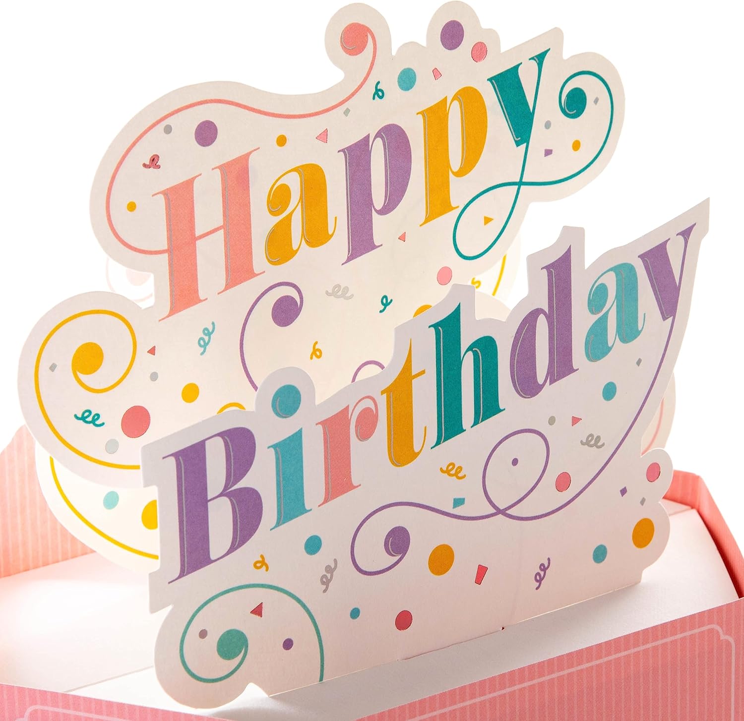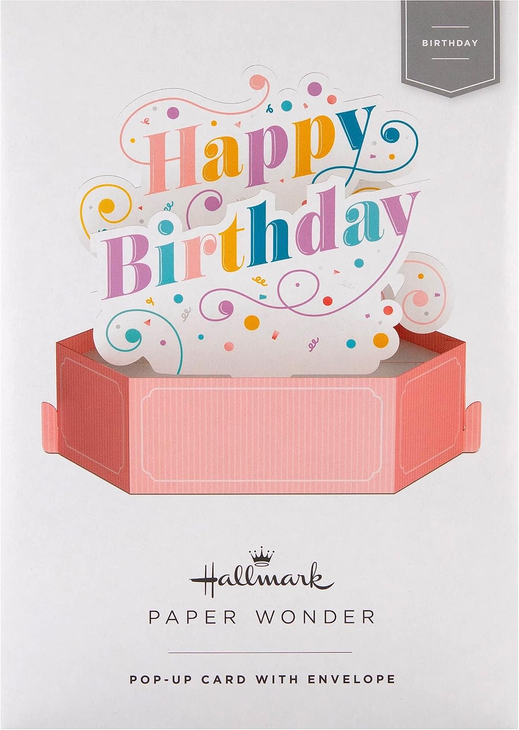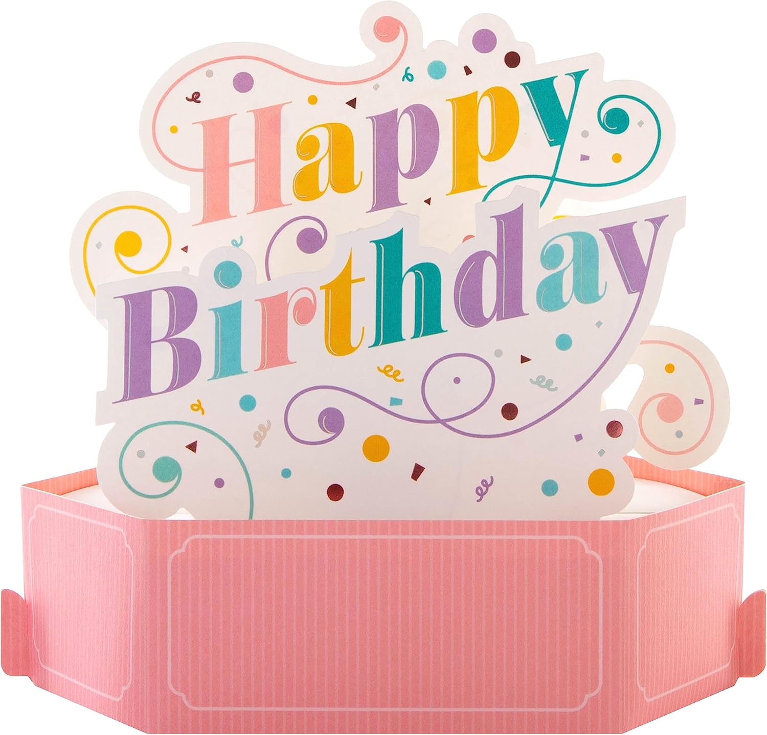 Wish someone a birthday full of the very best things with a pop-up birthday card they'll definitely appreciation, from Hallmark Printed on high-quality board, this card pops-up into a 3D diorama with a banner with text 'Happy Birthday', and features laser-cut designs and comes complete with a co-ordinating turquoise, Hallmark crown branded envelope This product is made using material from well-managed, FSC-certified forests and other controlled sources Message On Back Reads: Hope your day is full of good vibes! Flat Card Measures: 15.5 cm by 22.8 cm, Constructed Card Measures: 14 cm by 17.8 cm by 10.9 cm
