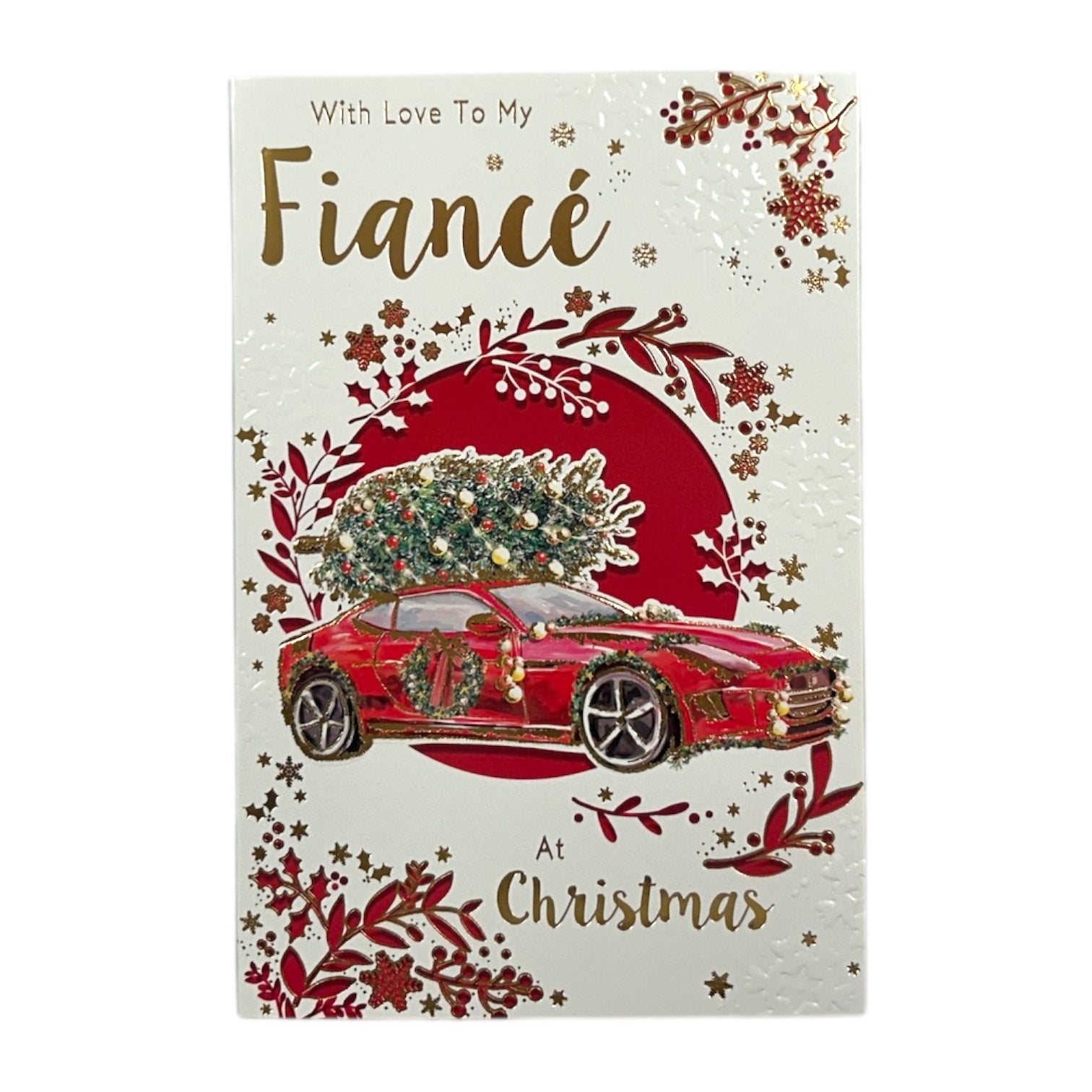 With Love to My Fiance Festive Car & Tree Design Christmas Card