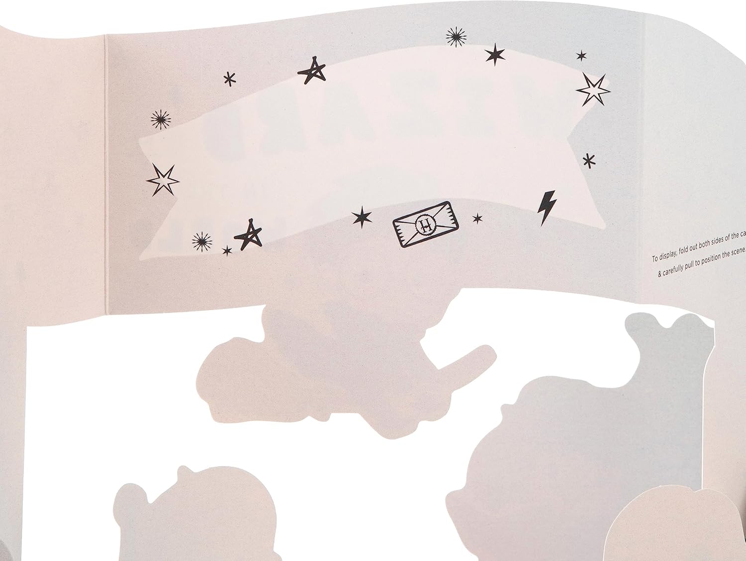 Make their birthday magical and full of enchanting wishes, with this exciting 3D Harry Potter birthday card from Hallmark Printed on high-quality board, this card pops up into an enchanting scene of Harry Potter characters, including Harry Potter, Ron Weasley, Hermione Granger, Draco Malfoy, Luna Lovegood, Hagrid, Severus Snape and Crookshanks the cat, the card features die cut elements, blue foil details and comes complete with a co-ordinating white, Hallmark branded envelope This product is fully recyclable, and made of material from well-managed, FSC-certified forests and other controlled sources Blank inside for your own message Flat Card Measures: 22.8 cm by 15.9 cm, Constructed Card Measures: 20.8 cm by 40 cm by 15 cm, Within Standard UK 'Large Letter' Size Limits