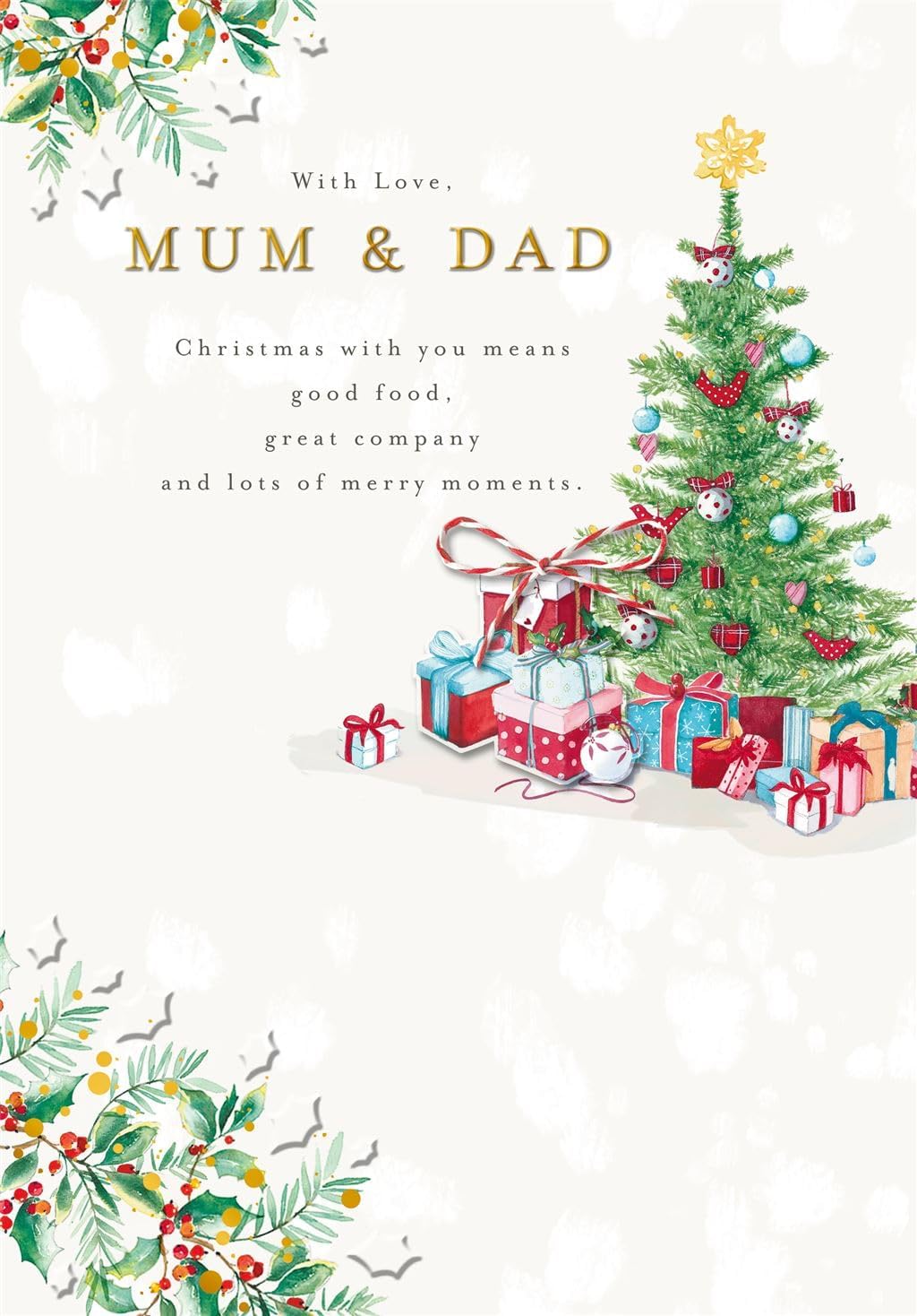 Decorated Tree and Presents Mum & Dad Christmas Card