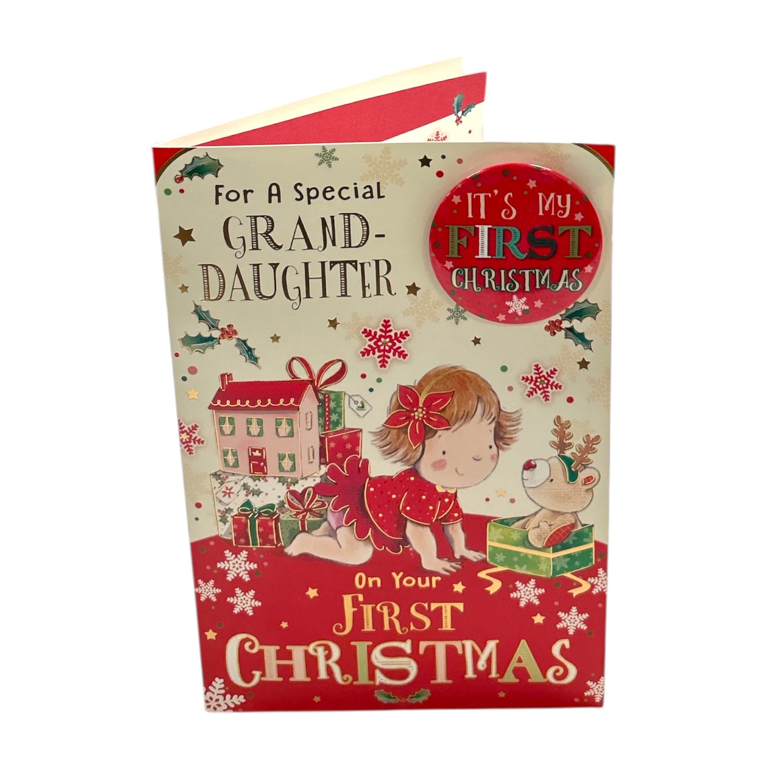 For a Special Granddaughter Badge First Christmas Card