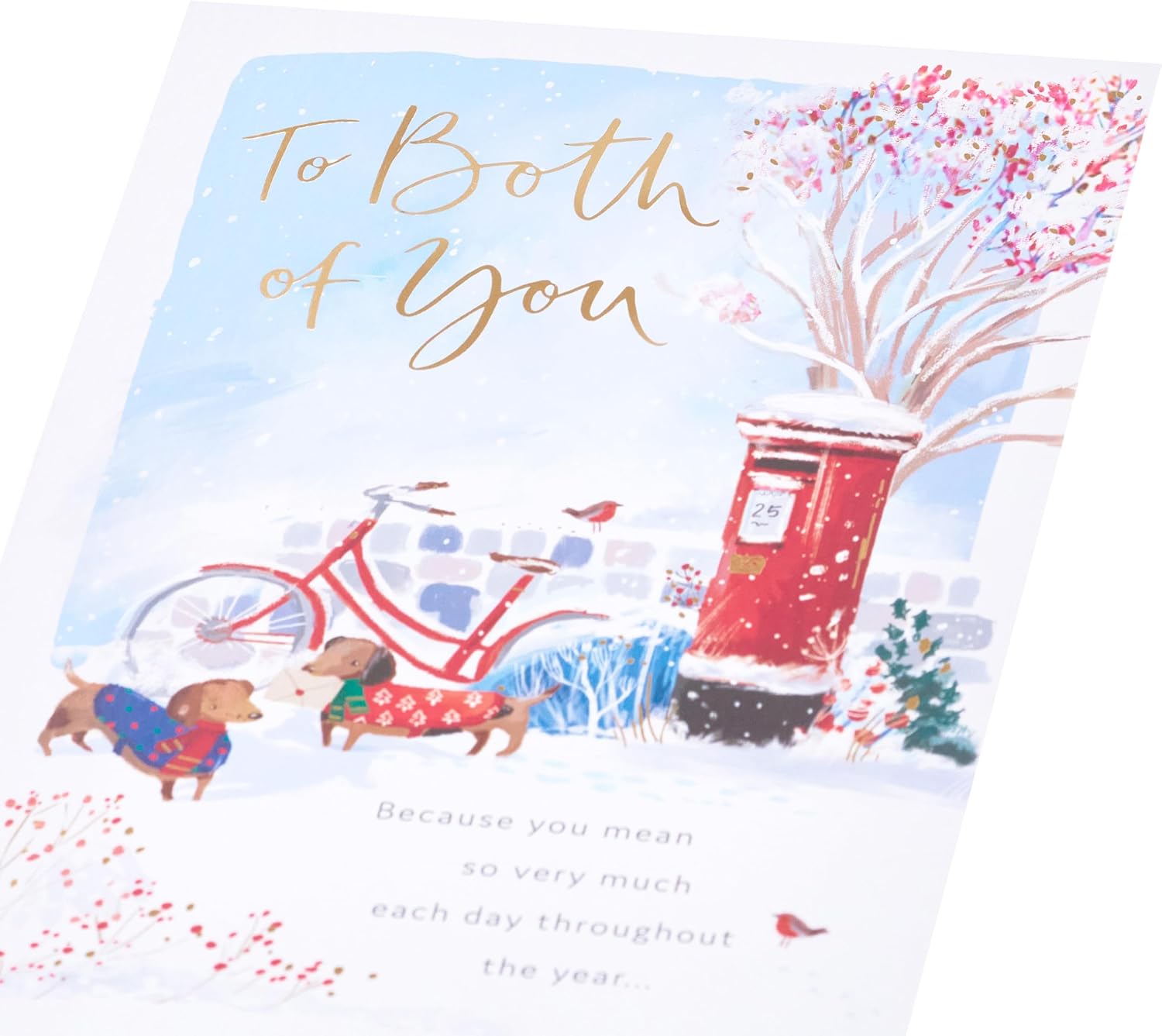 Send warm wishes this festive season with a Christmas card for friends, family, or colleagues. Whether traditional or funny, a heartfelt message will make their holiday even brighter. Celebrate the season together with this Christmas card for both of you, featuring a loving message and a festive Christmas feel! This card measures 22.9 x 14.9 cm, ample space for a personal message, and a perfect size for displaying as a keepsake in your home.