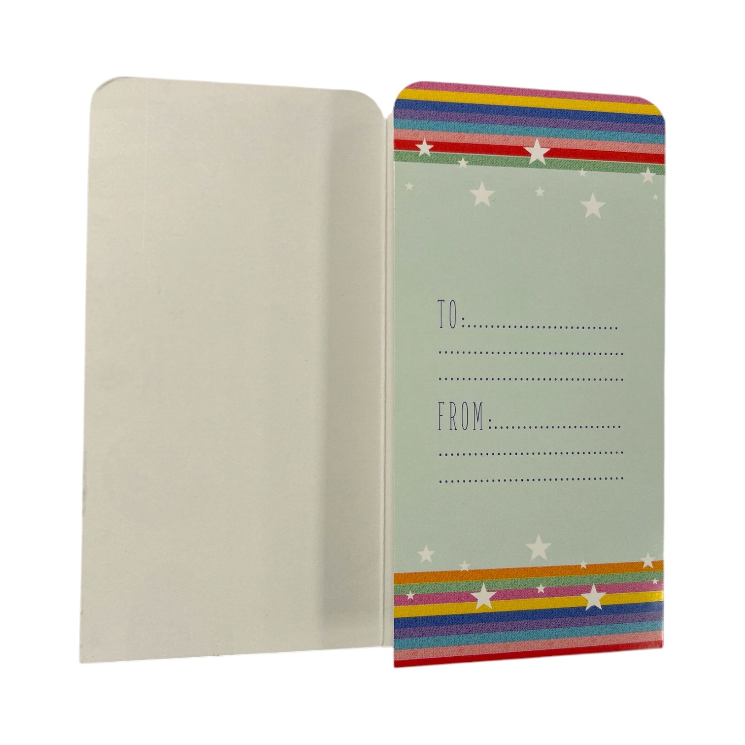 Make your great-grandson's Easter celebration extra special with this delightful money wallet card. The charming design features beautifully illustrated Easter eggs decorated in vibrant patterns - from cheerful stripes to playful zigzags - all rendered in a joyful rainbow of colours. Adorable bunnies and buzzing bees add a whimsical touch to the festive design, whilst golden stars sprinkled throughout create a magical effect. The card's message 'For a Dear Great-Grandson at Easter' is elegantly presented in eye-catching metallic text, perfect for showing your love and appreciation. This money wallet card offers a practical yet thoughtful way to give a monetary gift whilst sharing warm wishes for the Easter season. The spacious design provides ample room for including your personal message alongside any monetary gift. The playful artwork and carefully chosen sentiment make this card an ideal choice for celebrating your great-grandson during the spring holiday. Approx Size: Closed: 91 x 177mm, Open (3 fold): 270 x 177mm.