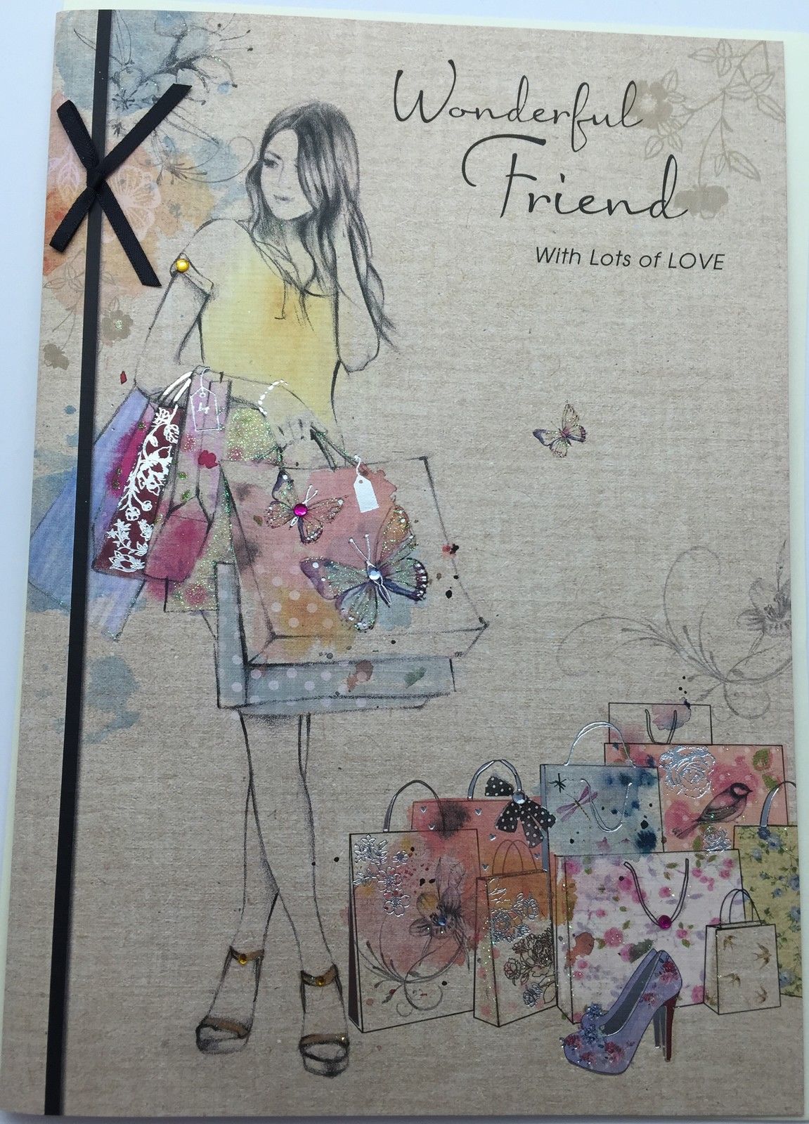 Friend Birthday Cards Greeting Card With Special Verse By Wishing Well High quality card. Full Colour Insert - Embossed, Foil, Ribbon, Bow, Gems and Glitter Coated Card. Size 26cm long Width 18cm