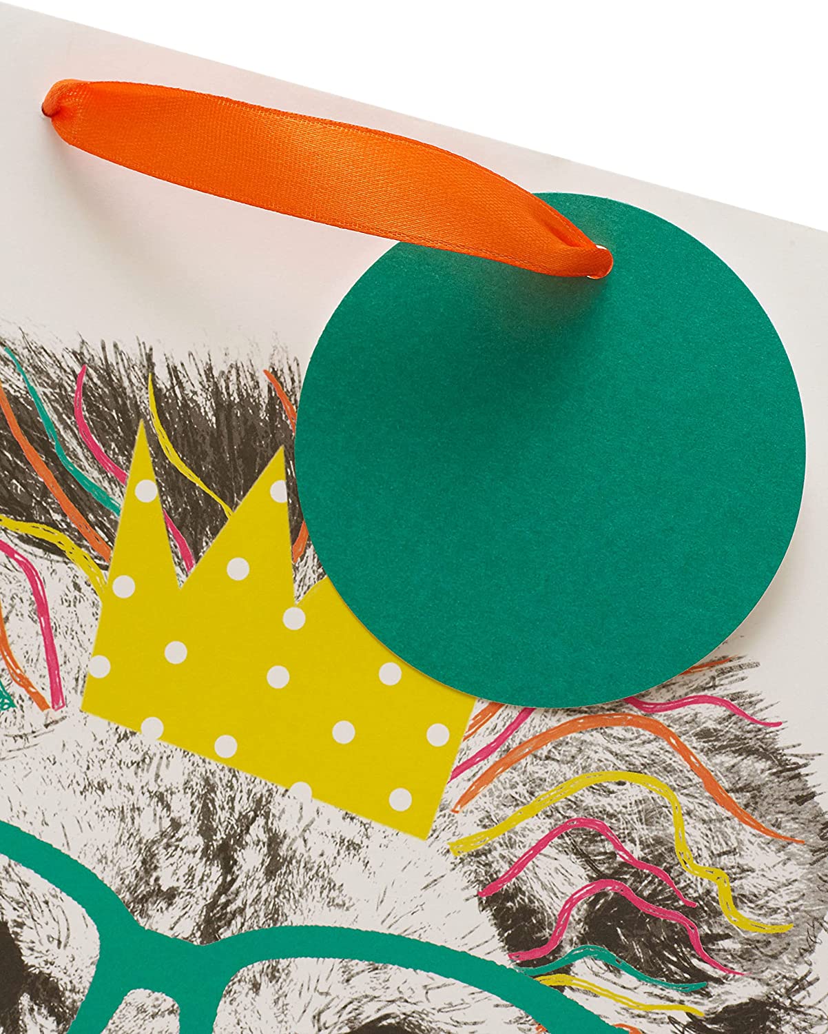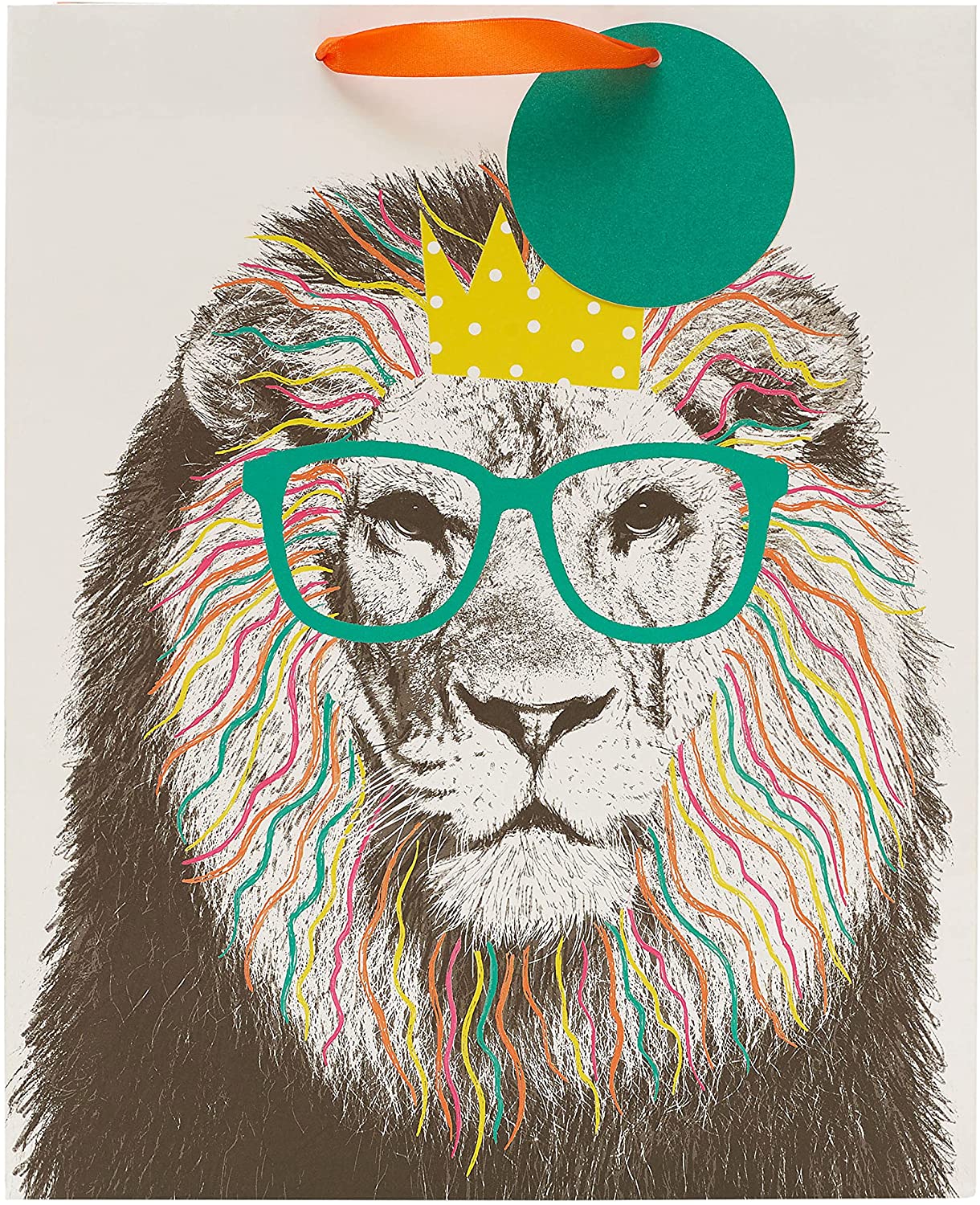 Featuring a charismatic lion, this large gift bag from the Vivid Safari range will help you present your gift with pride! Perfect for wrapping a variety of gifts Ideal wrapping solution for clothes, books, toys etc; Pack contains 1 large gift bag. Bag Size: W: 267mm x H: 330mm x G: 137mm.