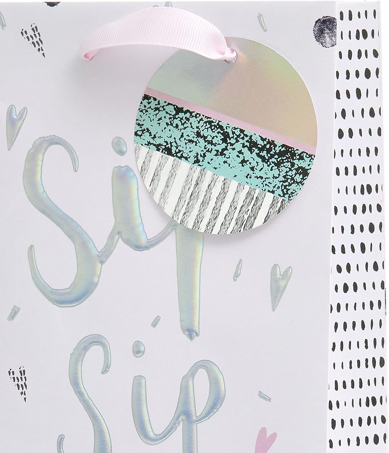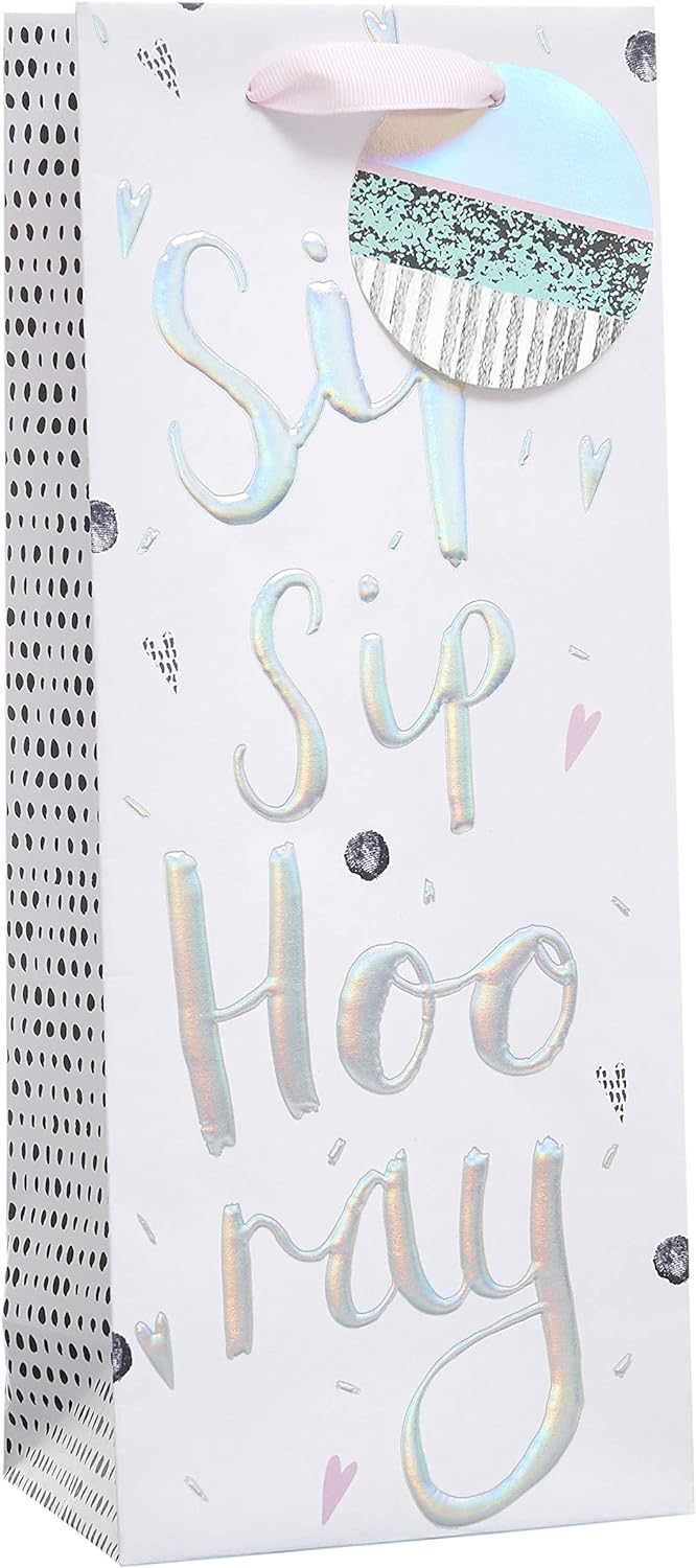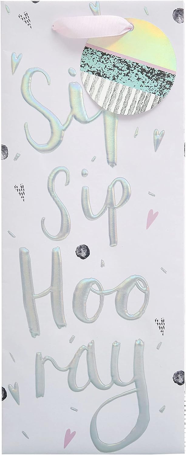 From weddings to birthdays, say ‘Sip Sip Hooray’ with this bottle gift bag, perfect for a range of celebratory tipples! Bag Size: 325mm x 132mm x 325mm. Pack Contains: Bottle Gift Bag and Tag. Ideal wrapping solution for a variety of celebrations!
