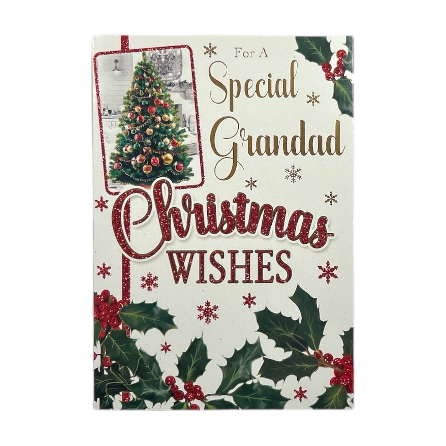 Traditional Tree & Holly Christmas Wishes Card For Grandad
