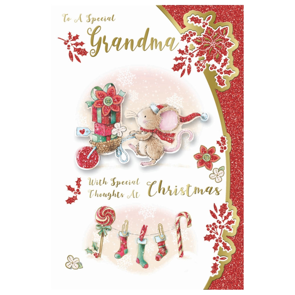 To a Special Grandma Mouse With Gift Backet Design Christmas Card. Approx Size 225 x 155mm.