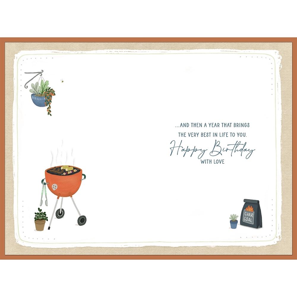 Celebrate your son-in-law's special day with this charming BBQ-themed birthday card from Wishing Well Studios. The delightful illustration features a cosy outdoor barbecue scene with a warm orange grill, garden accessories, and lovely decorative elements that capture the joy of outdoor entertaining. The card's thoughtful design incorporates subtle details like potted plants and outdoor furniture, creating an inviting atmosphere that perfectly suits the occasion. The message combines heartfelt birthday wishes with a playful BBQ theme, making it an ideal choice for a son-in-law who enjoys outdoor cooking and entertaining. The card features high-quality printing on premium paper stock with a decorative border design that frames the illustration beautifully. With its combination of style and sentiment, this birthday card offers a wonderful way to show your appreciation and celebrate your son-in-law's birthday in a personal and meaningful way. Size: 6x9in