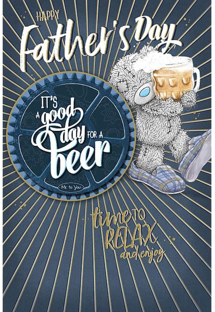 Bear Holding Beer Good Day Design Father's Day Card. Message inside card reads: "with love".Size: 6 x 9".