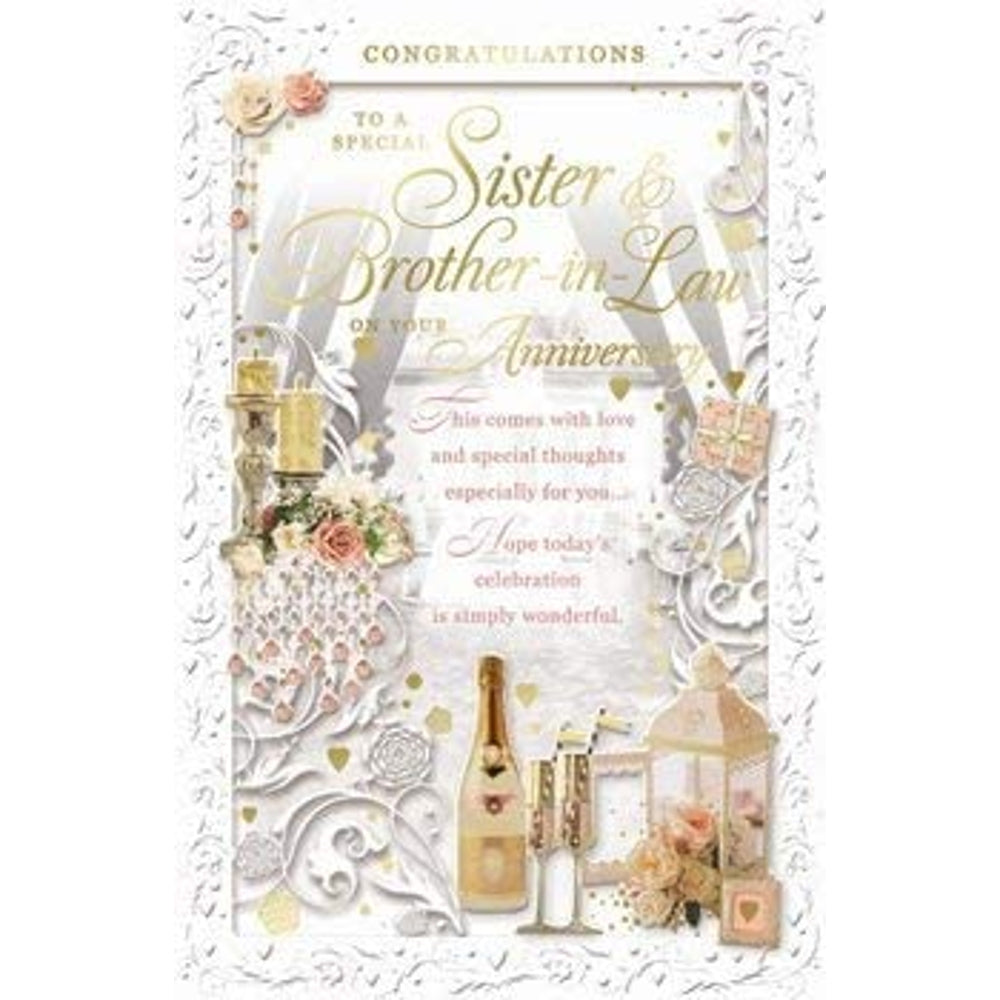 Congratulations To Sister & Brother In Law On Your Anniversary Open Opacity Card. Approx Size: 270 x 185mm.