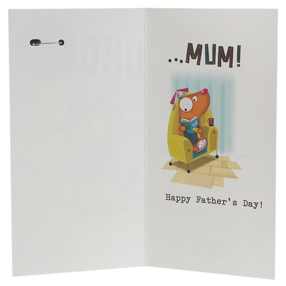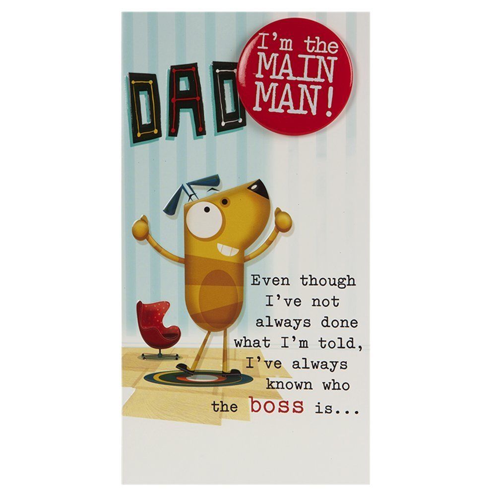 On Father's Day let your dad know who the boss is, with this fantastic card from Hallmark. Finishes: Embossed Design; Pin Badge. Includes: Blue Envelope. Royal Mail Postage: Large Letter Size