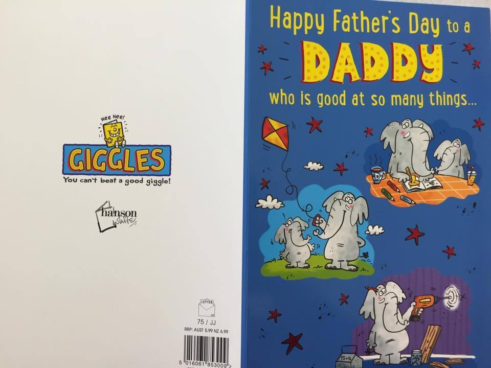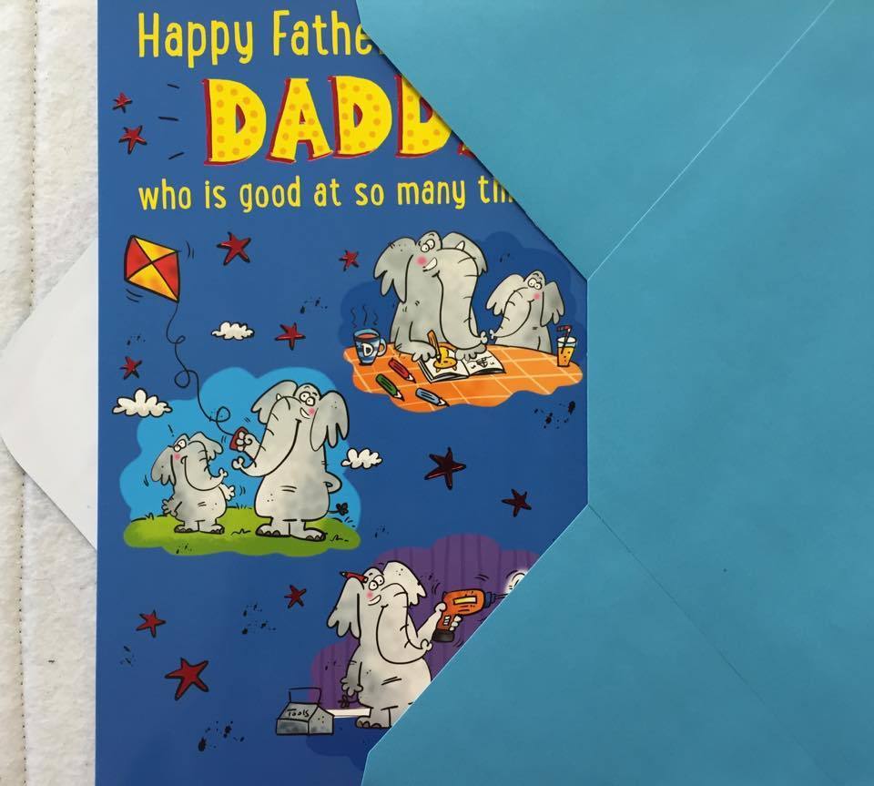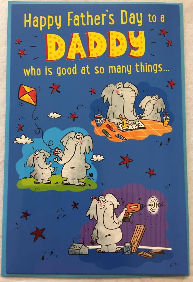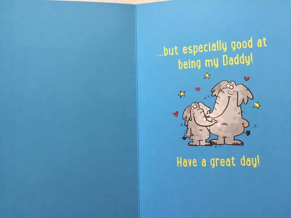 Love and sentiment is what this card is filled with. Send it to your special daddy. Envelope Height (mm): 235 Envelope Width (mm): 155 Style: Modern Relationship: Daddy Occasion: Fathers Day. Cover Message: Happy Father's Day to a Daddy/who is good at so many things… Inside Message: but especially good at being my daddy!/ Have a Great Day!.