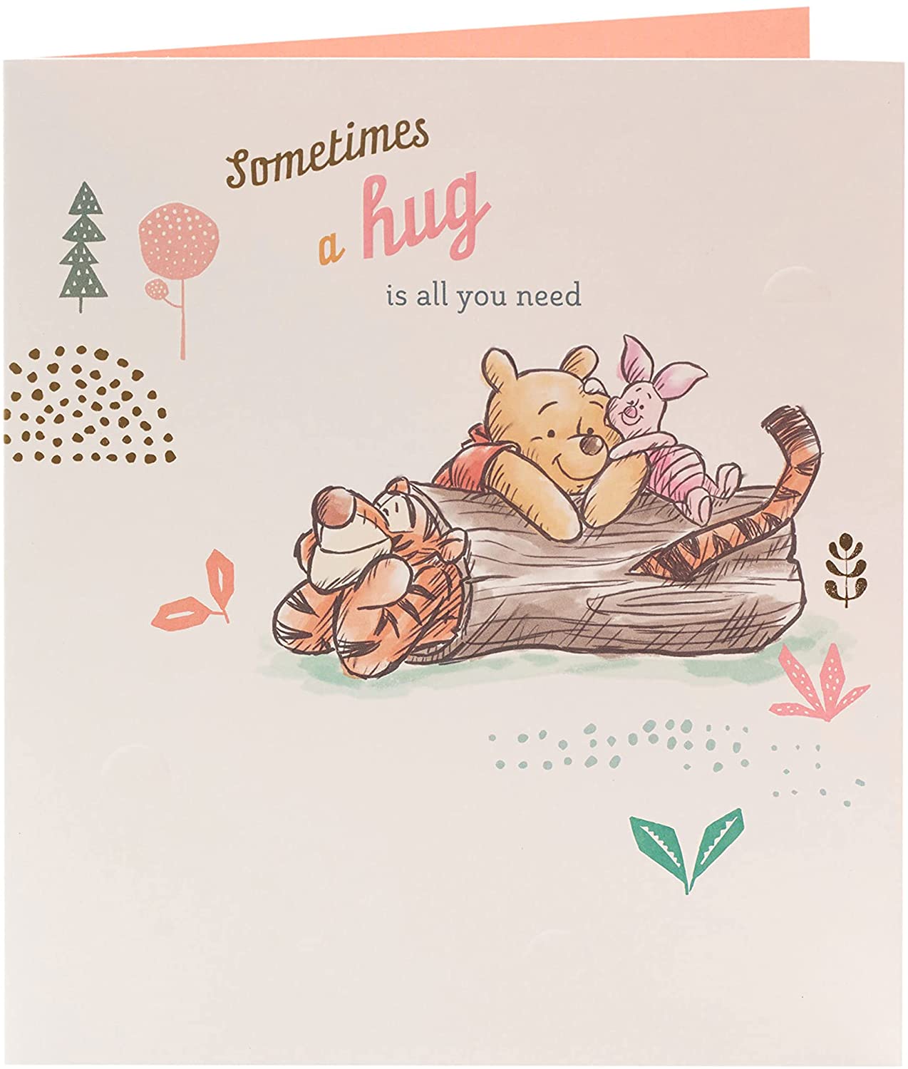 Send them a hug whenever they need one with this cute Winnie the Pooh card, finished with gold foil and embossed details. Inside Message Reads: I'll always have one waiting for you! Blank Birthday Card. Card Size: 159mm x 184mm. Envelope Included.