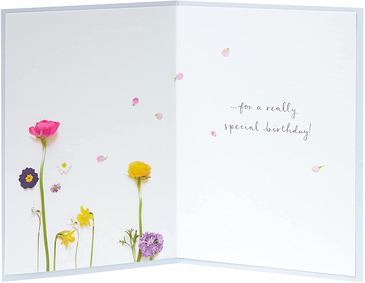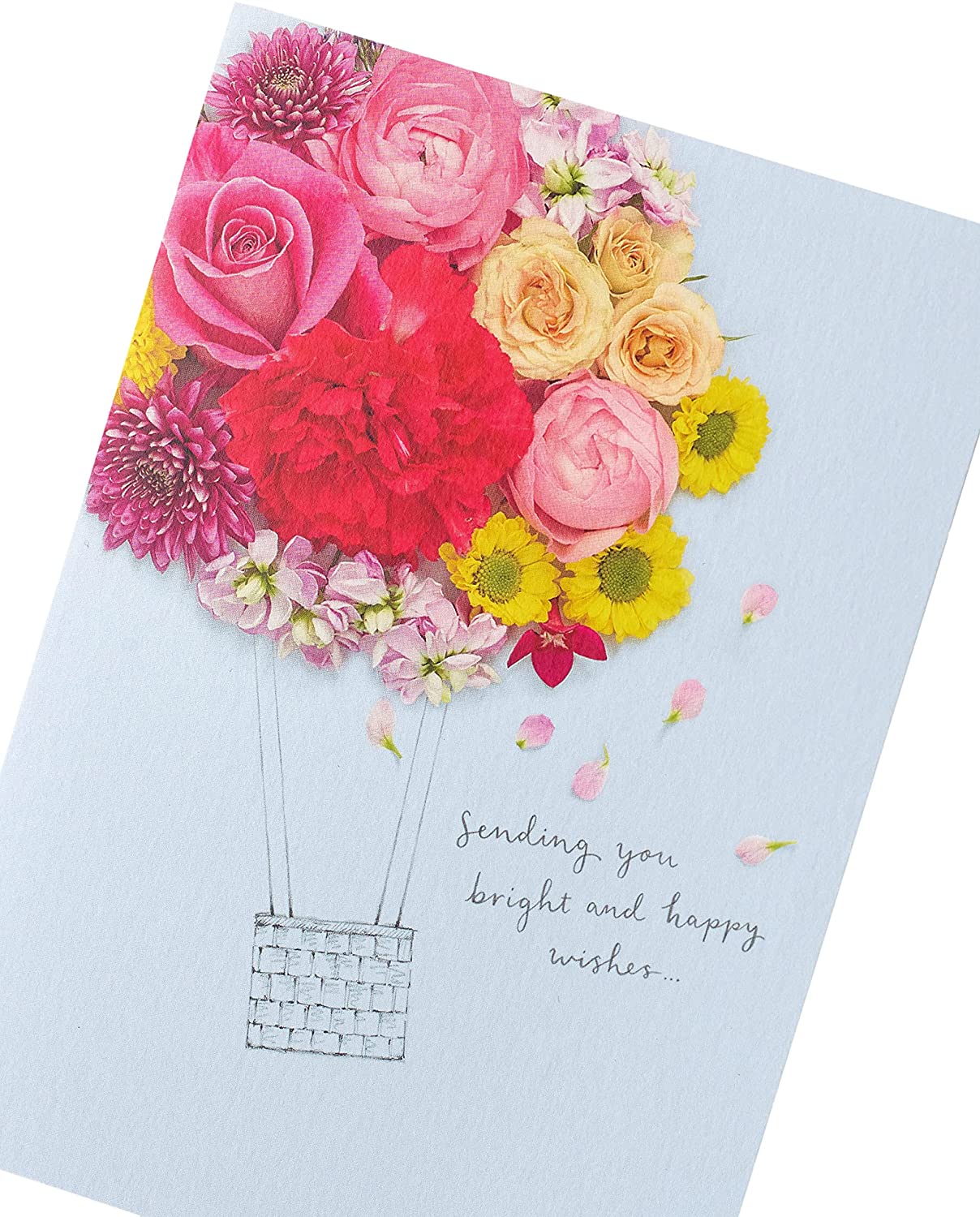 Send bright and happy birthday wishes with this beautiful card, featuring a floral hot air balloon design printed on premium quality board. Inside Message Reads: ...for a really special birthday! Card Size: 127mm x 178mm. Envelope Included.