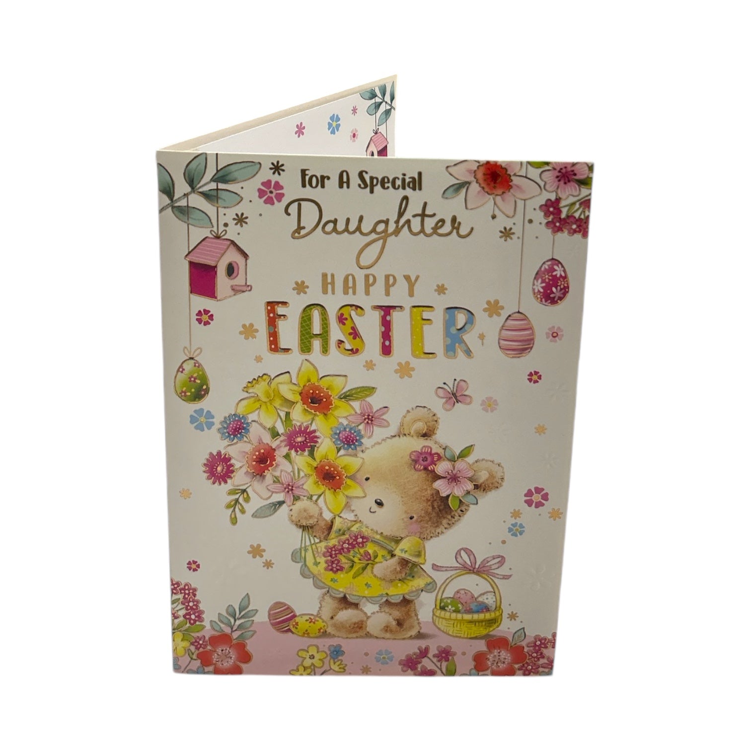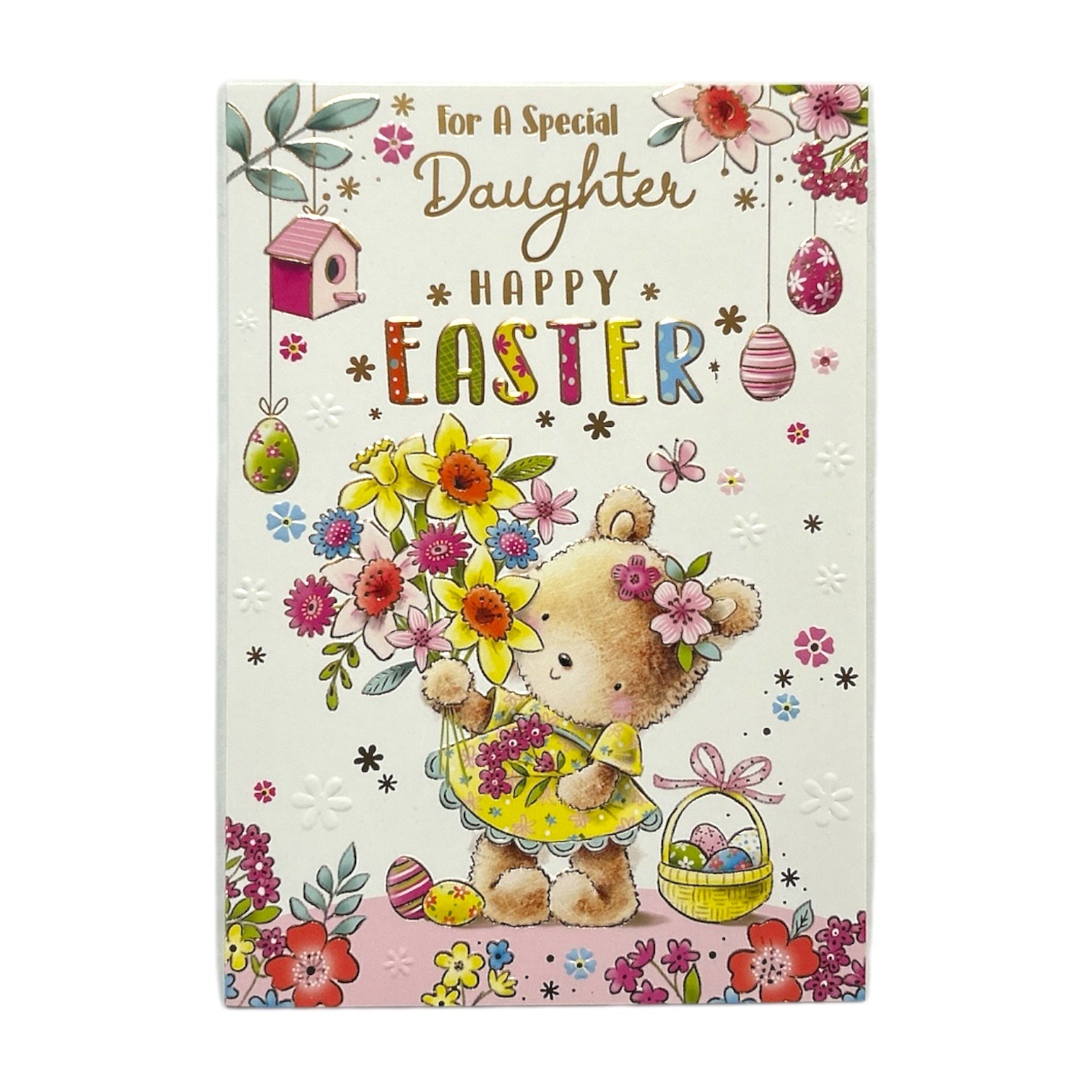 For A Special Daughter Teddy With Bunch Of Flower Design Easter Card