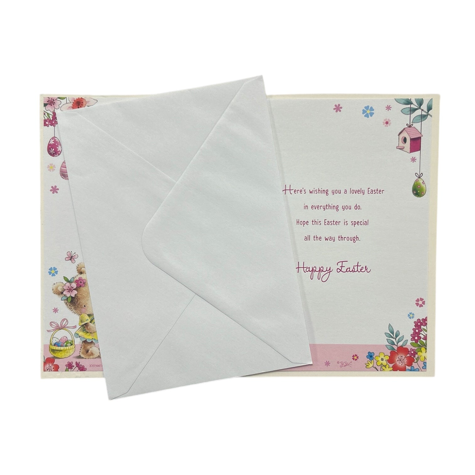 Offer love and kindness to your daughter; and celebrate the Spring blooms; with this cute teddy and bundle of floral Easter card from Xpress Yourself. Featuring a cute teddy with bunch of spring flowers, easter eggs decorated in vibrant patterns, motif flowers add a whimsical touch to the festive design, with the words "For A Special Daughter" on the front and easter wishes message inside. The card comes with a coordinating envelope. Card size approx. : 23 x 12cm.