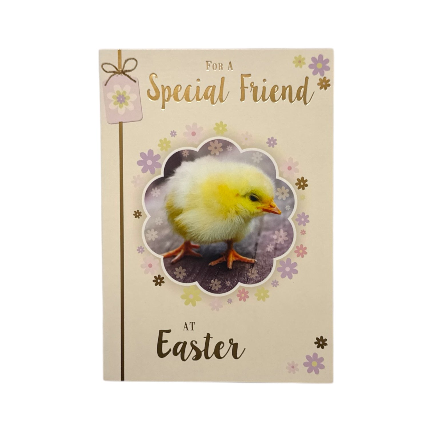 Send warm and cheerful Easter wishes with this Easter card, featuring an adorable baby chick surrounded by a delightful burst of small flowers. This charming design perfectly captures the joy and renewal of Easter, making it a wonderful way to brighten someone's day. Finished with embossed details and elegant foil accents, this card adds a touch of sophistication while maintaining its sweet and playful charm. Complete with a coordinating envelope, it's the perfect way to share love, happiness, and Easter blessings with family and friends. Card size: Approx. 19.5 x 14 cm.