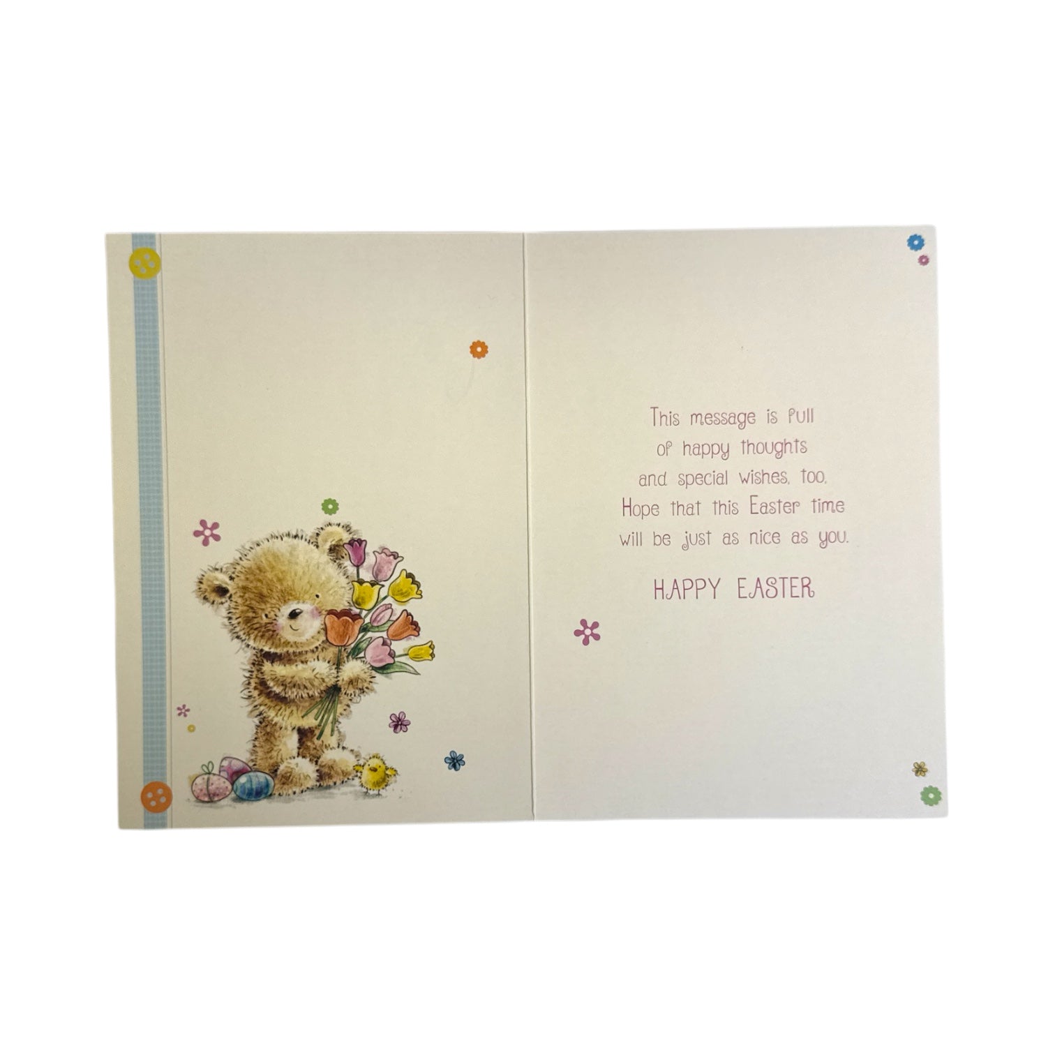 For Goddaughter Cute Teddy & Flowers Design Easter Card