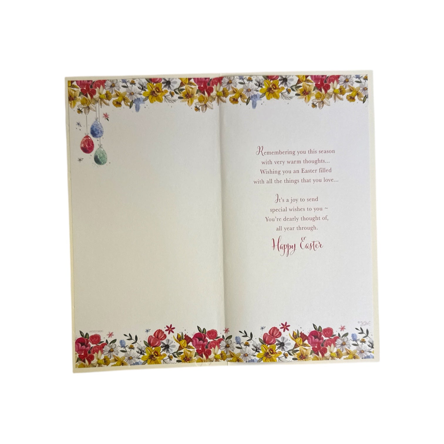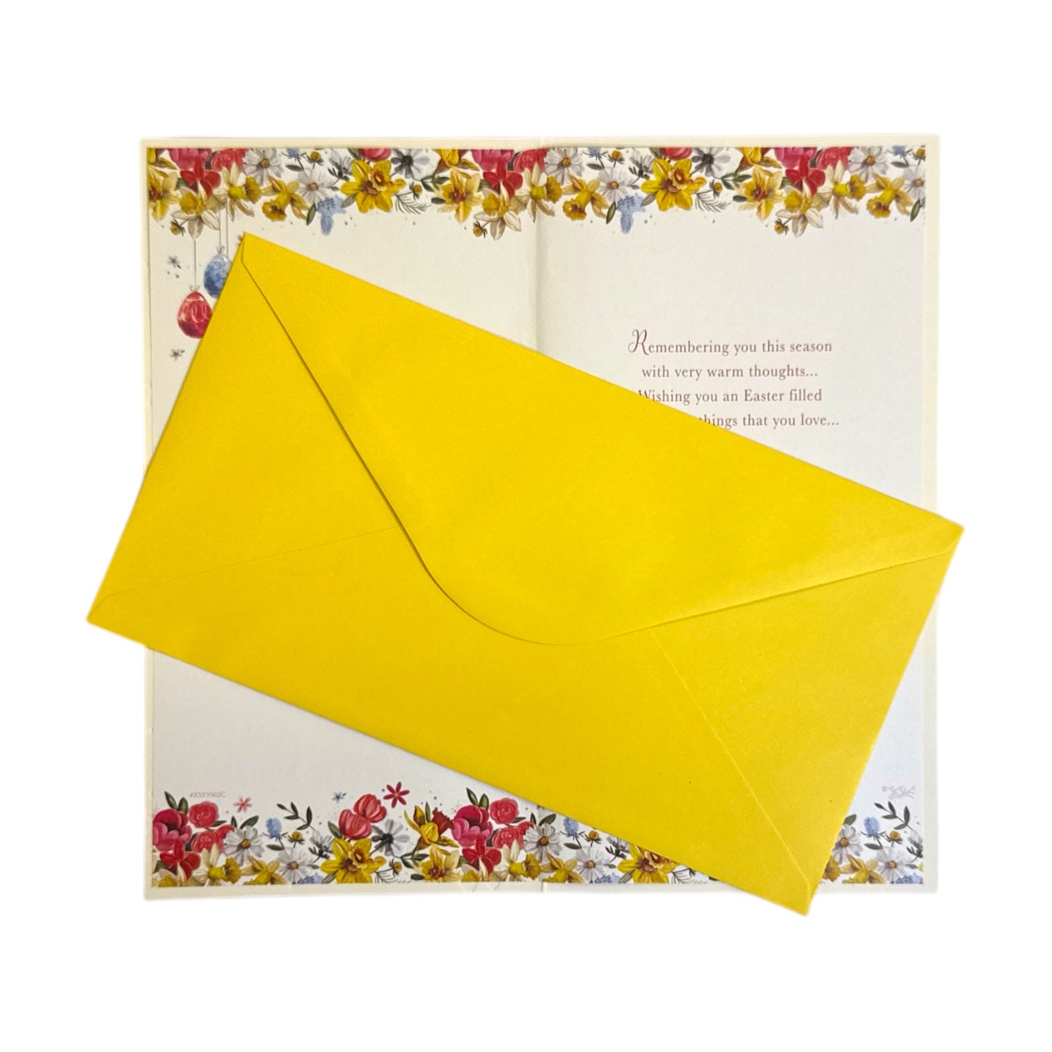 Spread the joy of Easter and fill their day with colourful blooms with our eco-friendly greeting cards, designed to capture the essence of springtime. Featuring a pretty design of colourful spring flowers, floral wreath add a whimsical touch to the festive design, with an "Happy Easter From All of Us" message on the front and easter wishes message inside. The card comes with a coordinating envelope. Card size approx. : 23 x 12cm.