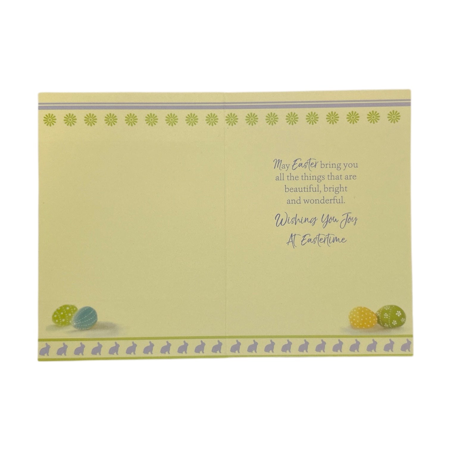 Send heartfelt Easter wishes with this charming Easter card, perfect for celebrating the joy of the season. Featuring a beautiful bucket filled with vibrant spring flowers alongside decorative Easter eggs in colorful patterns, this charming design captures the essence of Easter’s warmth and renewal. Enhanced with embossed details and elegant foil accents, this card radiates festive cheer and sophistication. Complete with a coordinating envelope, it’s a wonderful way to share love, happiness, and Easter blessings with family and friends. Card size: Approx. 19.5 x 14 cm.