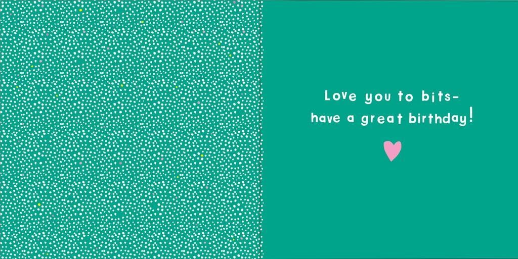 Celebrate mum's special day with this vibrant and stylish birthday card! The design features a stunning metallic gold crown with 'Queen of Mums' text, set against a cheerful pink background adorned with playful confetti dots in various colours. The complementary teal interior includes a heartfelt message 'Love you to bits - have a great birthday!' accompanied by a sweet pink heart. This delightful card perfectly balances modern design with warm sentiment, making it an ideal choice to show your mum just how special she is. The card's premium finish and thoughtful design elements create a lasting keepsake that any mum would treasure. Perfect for expressing your love and appreciation on your mum's birthday with a touch of royal flair! Size: 165 x 165,