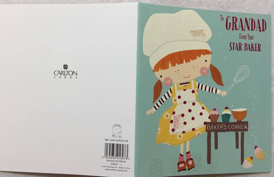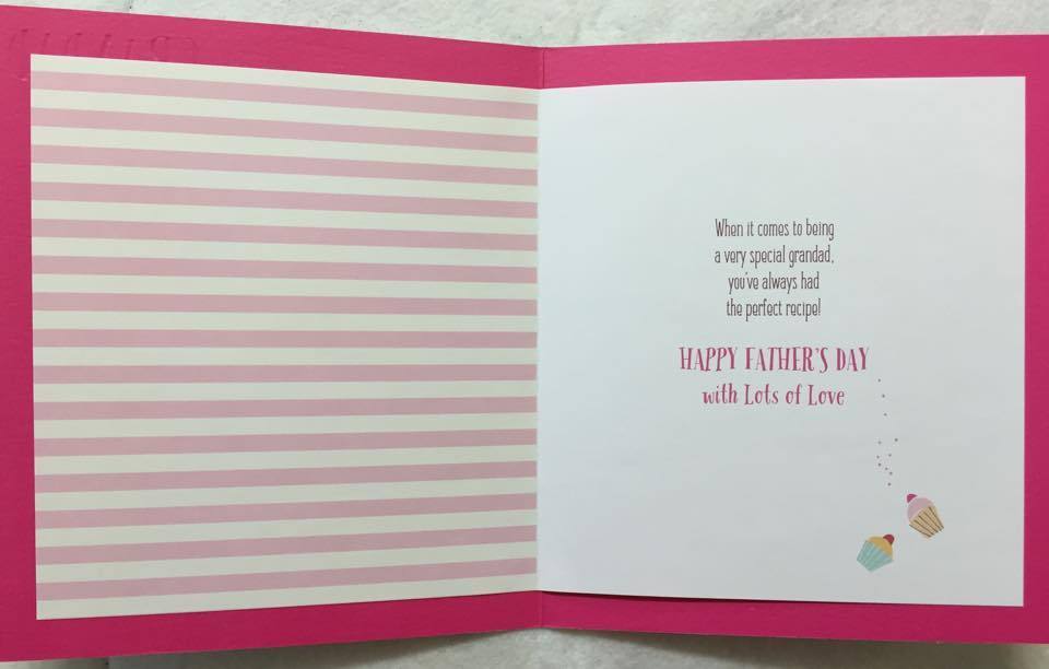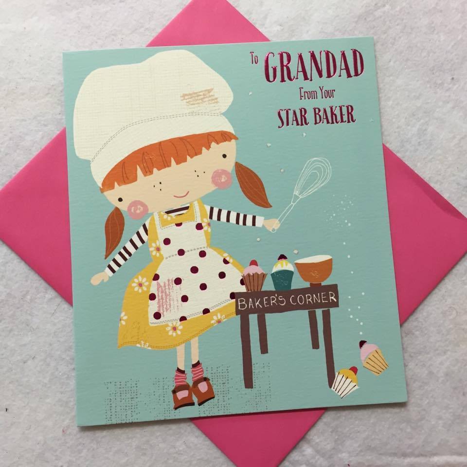 Send grandad the wonderful Star Baker Grandad Fathers Day Card and show him how much he means to you. Cover Message: Grandad From Your Star Baker Inside Message: When it comes to being a very special grandad, you've always had the perfect recipe! Happy Father's Day with Lots of Love. Envelope Height (mm): 190 Envelope Width (mm): 165 Relationship: Grandad from Granddaughter Occasion: Fathers Day