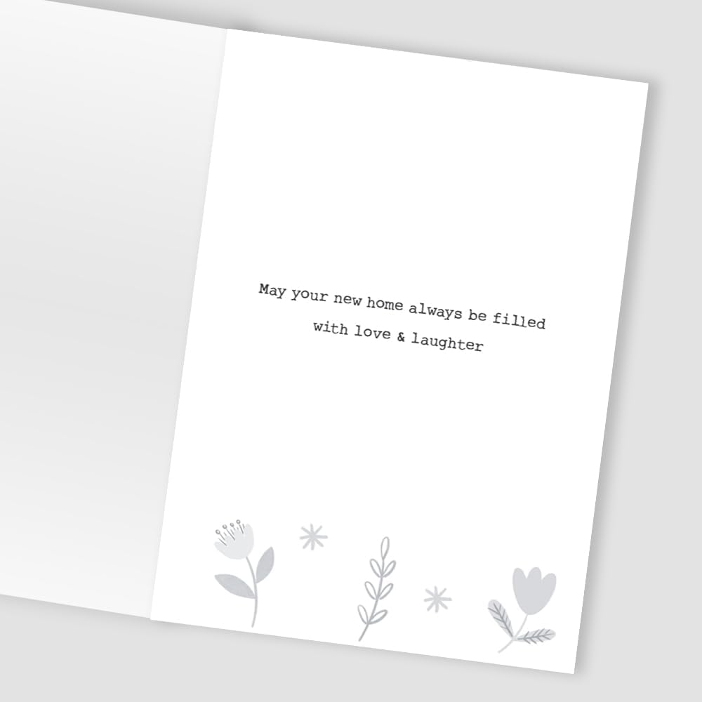 You are viewing: A New Home Greeting Card by Second Nature Occasion: Great for celebrating a new home Message: May your new home always be filled with love & laughter Details: This greeting card from Second Nature's Just To Say range features a charming design of a new home atop a hill, complete with a key, paint brushes, mugs and flowers. With the words 'Happy New Home Where adventures begin and memories are made', this embellished card is sure to make a special someone excited to have moved home! Good to know: Our hand-finished card is eco-friendly, printed with soy inks, and comes with a white envelope. It is cello-wrapped for protection. Size: 13cm x 18cm or 5" x 7" Postal Size: Letter