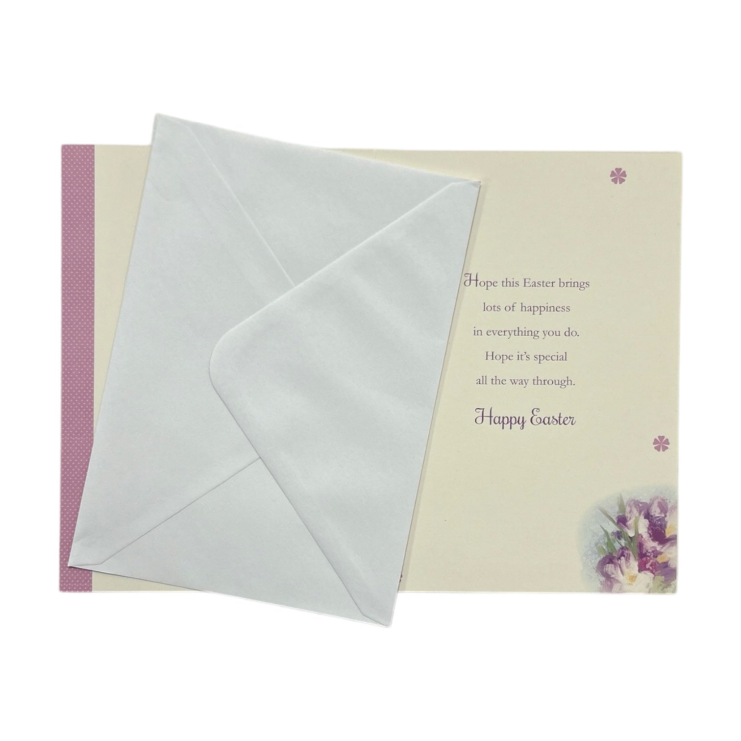 Celebrate Easter with this beautifully designed rabbit greeting card, perfect for sharing warm wishes with all the family. Featuring a stunning arrangement of flowers and butterflies, this elegant card is adorned with embossed details, and delicate foil accents, adding a touch of sophistication. The heartfelt message on the front reads, "Just For You At Easter" making it a thoughtful choice for your loved ones. Complete with a coordinating envelope, this card is a wonderful way to spread joy and celebrate the season. Card size: Approx. 19.5 x 14 cm.