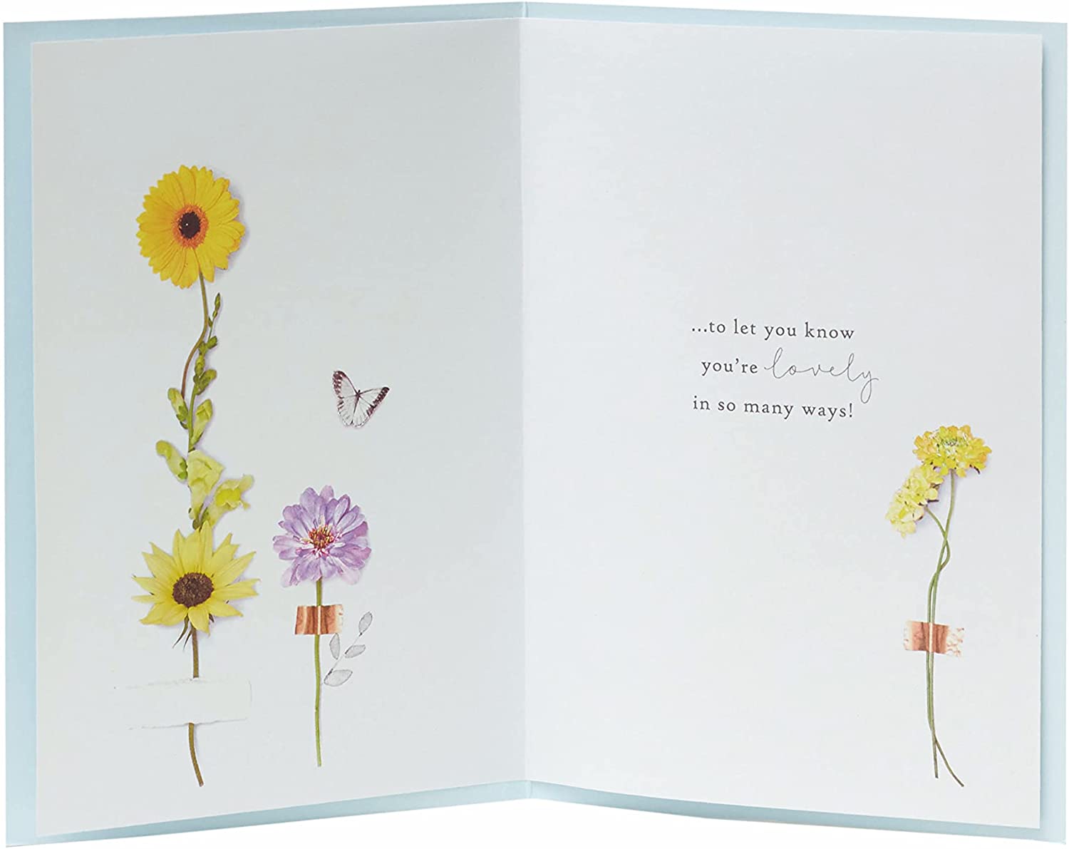 There doesn’t need to be a special occasion to let someone know how lovely they are – this beautiful photographic floral card is suitable to send at any time. Inside Message Reads: ...to let you know you're lovely in so many ways! Card Size: 127mm x 178mm. Envelope Included.