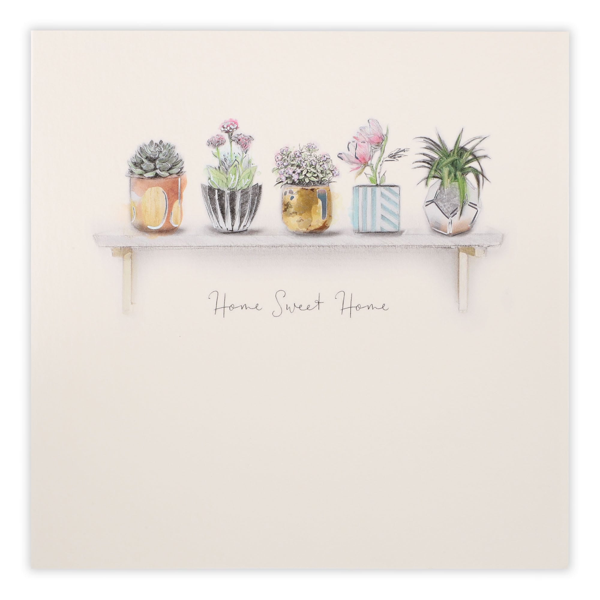 COVER MESSAGE: Home Sweet Home. INSIDE MESSAGE: Wishing you so much happiness in your new home! Size: 159mm x 159mm. PACKAGE SIZE: Standard Letter.