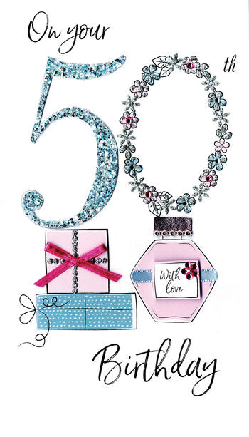 Perfume & Gift 50th Birthday Card Hand-Finished Champagne Range
