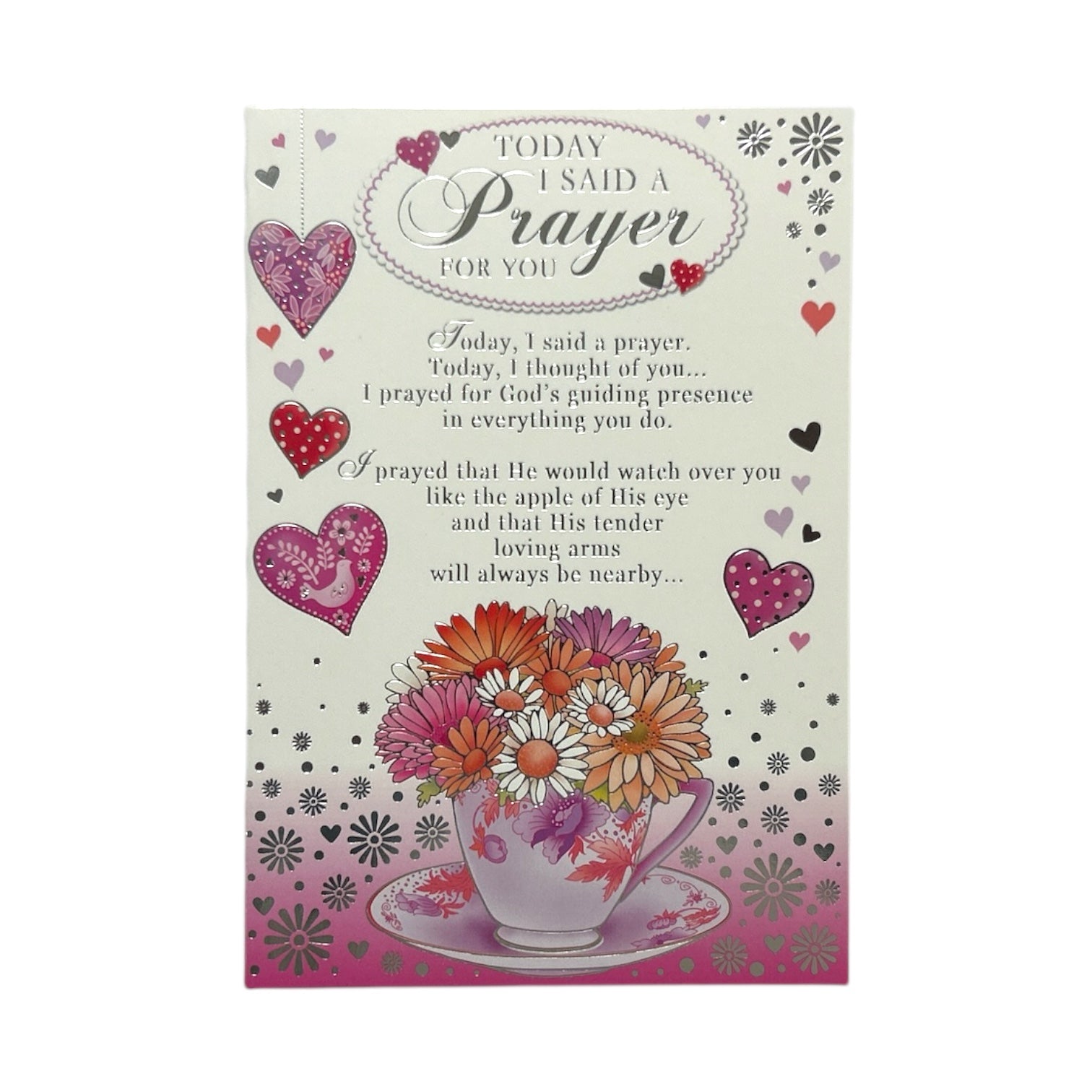 Prayer For You Flowers In Tea Cup Silver Design Thinking Of You Card