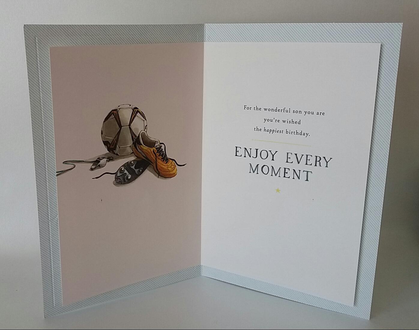 Son Birthday Enjoy every moment Greetings Card Football Kit