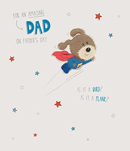 Wording on Front: For an amazing Dad on Father's Day. Is it a bird? Is it a plane? Inside Verse: ...no it's you - super Dad!!! Happy Father's Day. Finish: Matt, Embossed, Foil & Colour Insert. Dimensions: 182 x 157mm.
