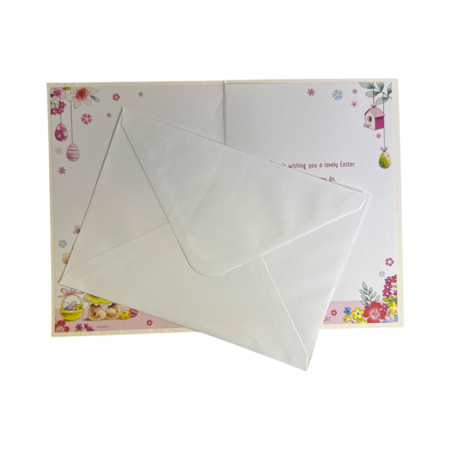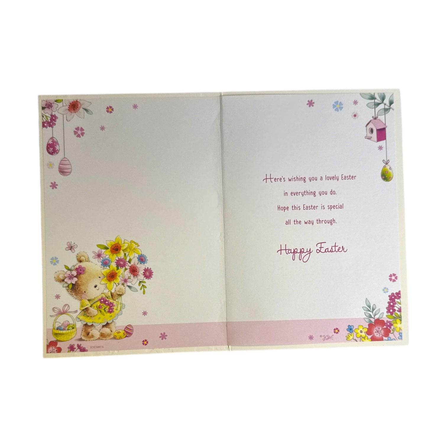 Offer love and kindness to all your friends and relatives; and celebrate the Spring blooms; with this cute teddy and bundle of floral Easter card from Xpress Yourself. Featuring a cute teddy with bunch of spring flowers, easter eggs decorated in vibrant patterns, motif flowers add a whimsical touch to the festive design, with the words "With The Best Whishes For A Happy Easter" on the front and easter wishes message inside. The card comes with a coordinating envelope. Card size approx. : 23 x 12cm.