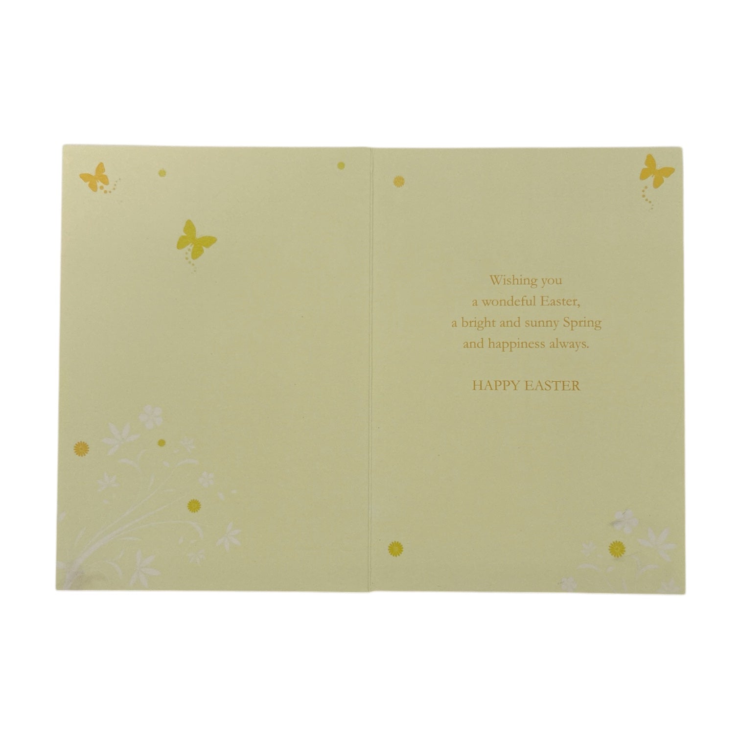 Send your loved ones warm Easter wishes with this beautifully designed greeting card. Featuring a lovely design of spring daffodils and delicate butterflies, this card captures the essence of the season—renewal, joy, and beauty. The elegant design is enhanced with embossed details and shimmering foil accents, adding a sophisticated touch. The front message reads, "Thinking Of You," expressing your love and best wishes for a joyful holiday. Complete with a coordinating envelope, this card is a perfect way to share your heartfelt sentiments and celebrate Easter together. Card size: Approx. 19.5 x 14 cm.